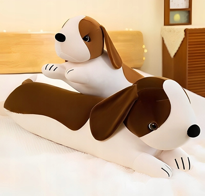 MASKOTKA PLUSZAK PRZYTULANKA PODUSZKA DŁUGI PIES SZCZENIAK JASNY BRĄZ 50 cm