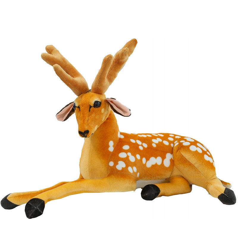 MASKOTKA PLUSZAK ZABAWKA LEŻĄCY JELEŃ SARNA ROGI BRĄZOWY CĘTKI XXL 80 cm