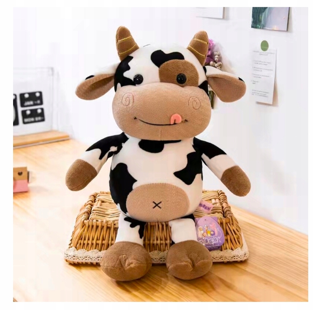 MASKOTKA PLUSZOWA KROWA PRZYTULANKA PLUSZOWA ŁACIATA KRÓWKA 50CM
