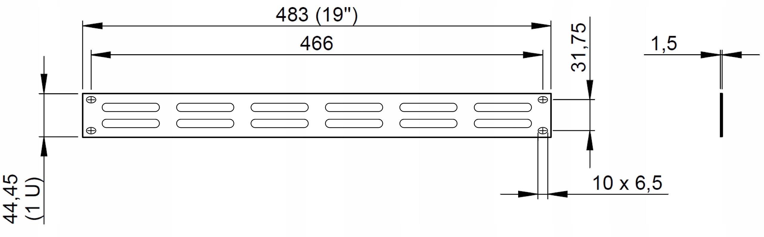 Маскувальна панель торцевої кришки RACK 19 шафа 1U отворів