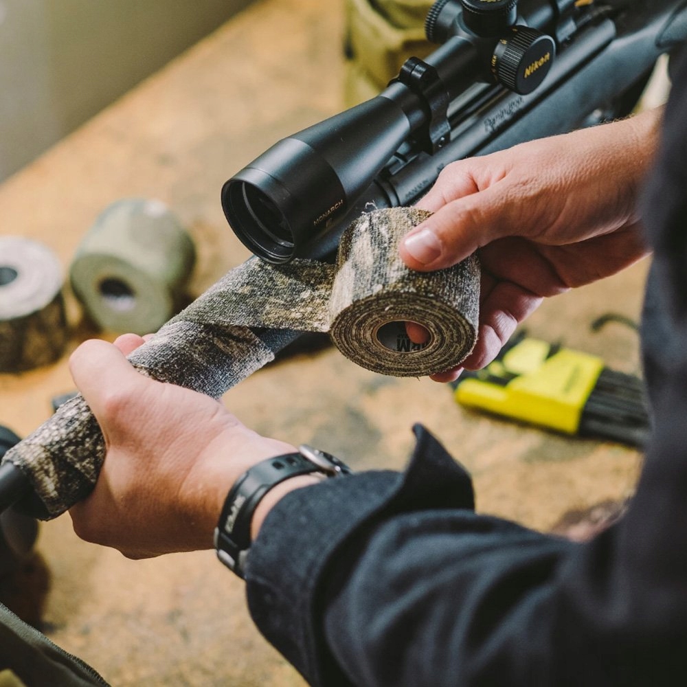 Camo Form — це гнучка самоклеюча маскувальна стрічка від Gear Aid, яка дозволяє закріпити та накрити камуфляжем зброю та спорядження — ножі, ліхтарики, біноклі тощо. Завдяки можливості багаторазового наклеювання та видалення (листя без слідів), якщо він забрудниться або намокне, ви можете його легко розібрати, випрати, висушити та повторно застосувати. Один рулон покриває гвинтівку або дробовик стандартного розміру.