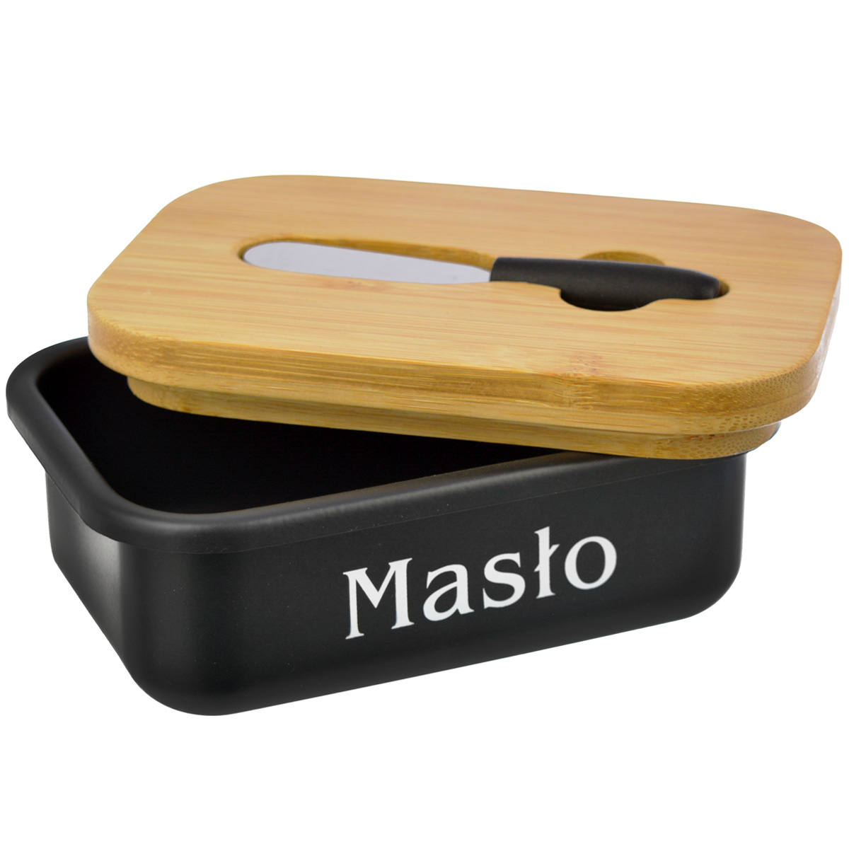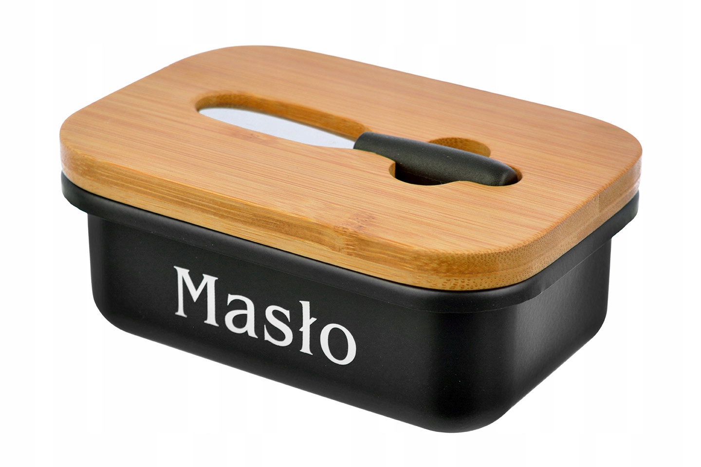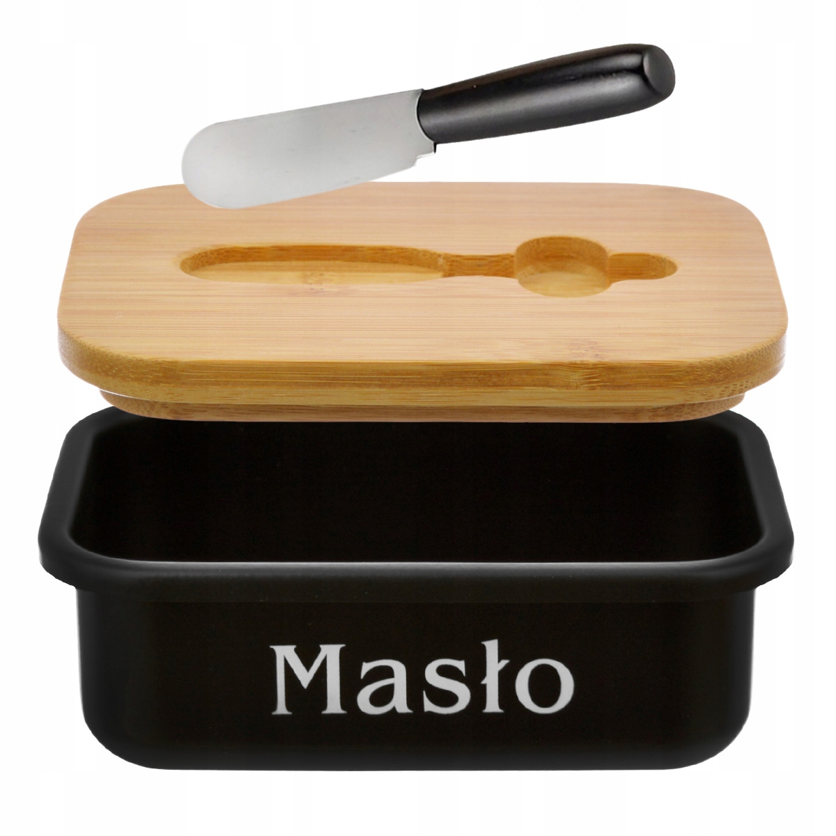ЧОРНА МАСЛЕННИЦЯ З БАМБУКОВОЮ КРИШКОЮ + НОЖЕМ ДЛЯ МАСЛА