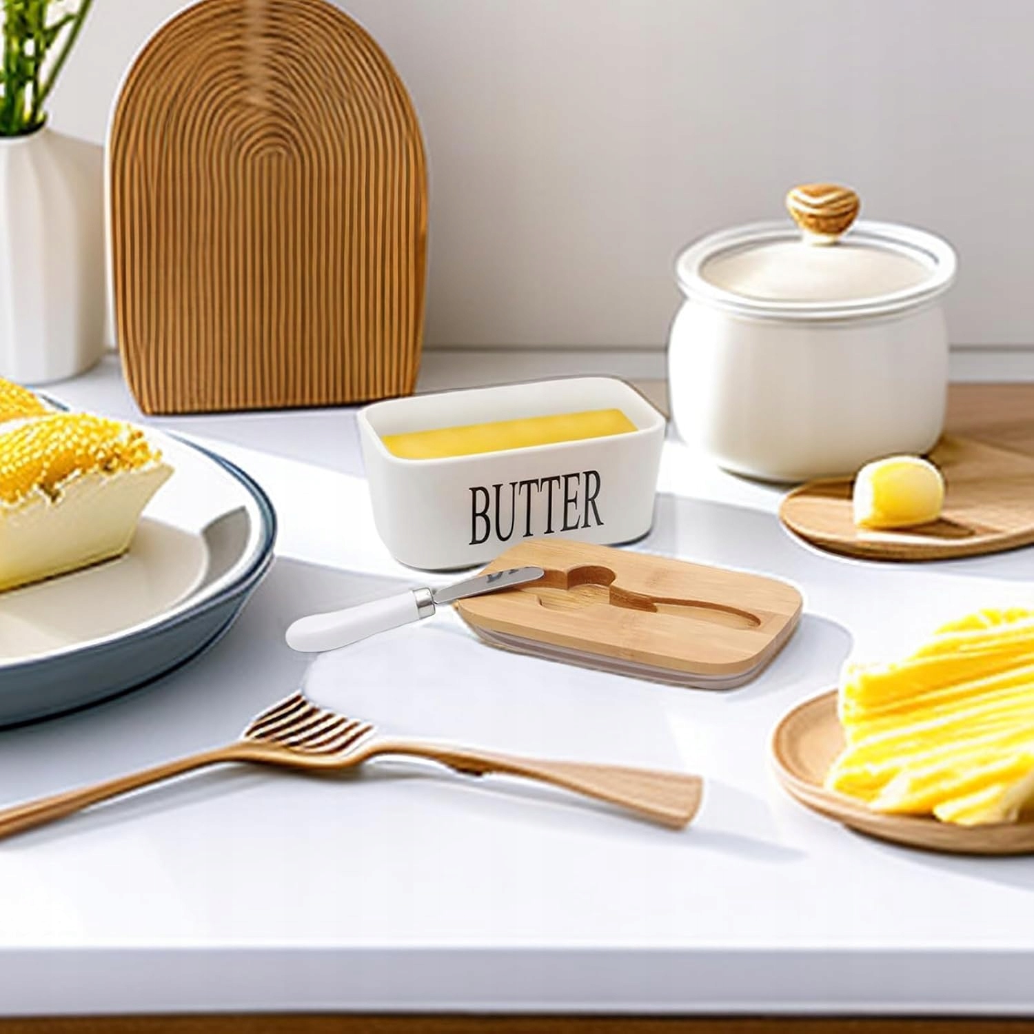 На відміну від пластику, ця маслянка виготовлена з харчової кераміки, не містить токсинів і хімікатів, що робить її безпечною для навколишнього середовища та вашої родини. Він більш міцний і міцний, ніж керамічний посуд, що робить його практичним і надійним вибором на кухні.