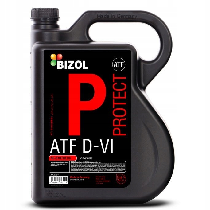 BIZOL Protect ATF D-VI належить до останнього покоління рідин для автоматичних трансмісій на основі синтезу HC у поєднанні з сучасним високоефективним пакетом присадок. Відповідає вимогам багатьох виробників автомобілів і автоматичних трансмісій по всьому світу. BIZOL Protect ATF DVI призначений для використання в автоматичних трансмісіях, гідравлічних системах і системах рульового керування з підсилювачем легкових автомобілів і мікроавтобусів.