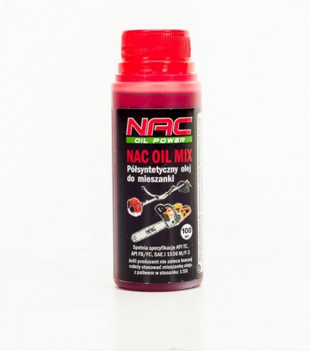 Оригінальна напівсинтетична олива NACдля змащування двотактних двигунів електрогенераторів, газонокосилок і тримерів, газонокосарок та інших садових машин, особливо з повітряним охолодженням завдяки особливому складу масло має низьку схильність до димлення, що робить його більш екологічним. Масло містить спеціальні фарбувальні речовини, які дозволяють легко відрізнити паливну суміш від чистого палива. Оригінальний продукт торгової маркиNAC.