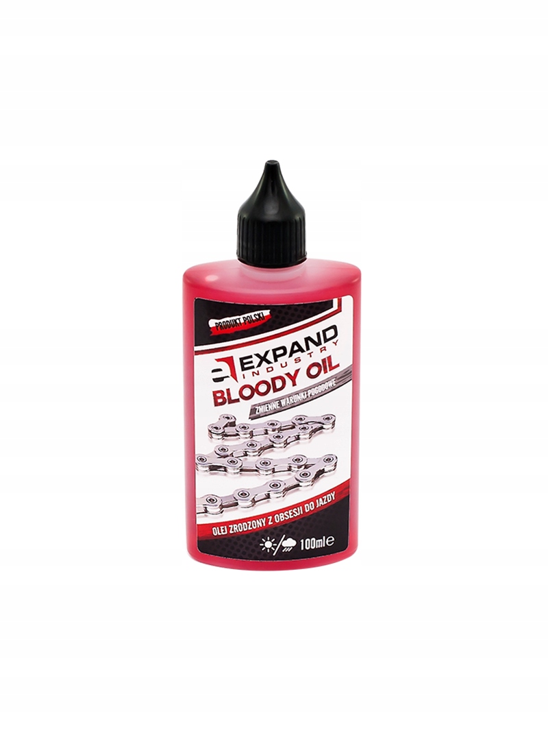 Chain bloody OIL суха/мокра 100 мл - змінні умови - Ми представляємо це надзвичайно ефективне масло для змінних умов. Використання мастильних присадок EP (extreme pressure) зробить цю оливу привабливою для користувачів, які цінують якість мастила. Отриманий прикордонний шар (через використання збагачувальних добавок) на поверхні втулки-пальці прилипає до найменшої міри, можливої для цього класу мастильних властивостей. Завдяки високій внутрішній консистенції масло чудово глушить привід і запобігає розтягуванню ланцюга. Продукт на 100% біологічно розкладається. Точний аплікатор дозволить вам зручно нанести одну краплю олії на кожну ланку ланцюга. Після змащування надлишки масла витріть серветкою. Перед використанням очистіть ланцюг WASHER.