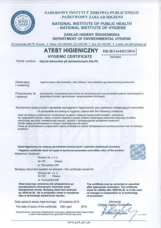 EKO-PIL® 68 - мастило призначене для змащування та обслуговування механічних пильних ланцюгів та напрямних для бензопил, які використовуються в лісовому, садівницькому та домашньому господарстві.