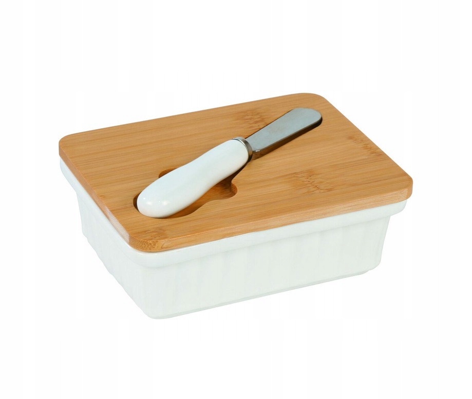 модерно керамічний маслянин з бамбуковою кришкою поєднує в собі сучасність та природні матеріали, завдяки яким він ідеально вписується в різноманітні дизайни інтер'єру. Сировина, з якої здійснюється цей продукт, забезпечують довговічність та стійкість до пошкодження. Бамбукова кришка додає чарівності та екологічно чисті.