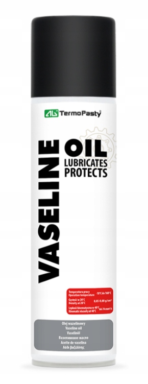 Олія вазелінова від AG Thermopasty — мастило для деталей машин і точних механізмів. Його завдання - зменшити тертя і зберегти елементи, які піддаються впливу погодних умов. Препарат додатково захищає пластмасові та гумові вироби від прилипання до форм. Вазелінове масло для змащення використовується для усунення скрипів і скреготу. Крім того, його застосування сприяє прослизанню під час роботи обладнання. Продукт не можна зберігати поблизу окислюючих речовин.