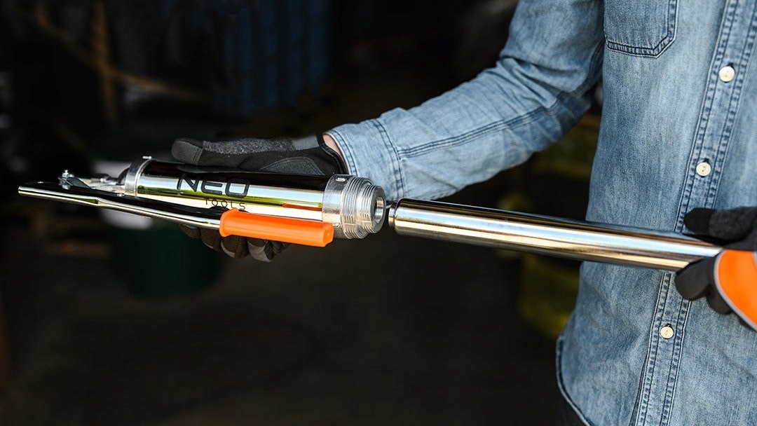 Мастильний насос NEO TOOLS призначений для рідин на масляній основі, палива, моторного масла, дизельного палива та очищеного гасу.
