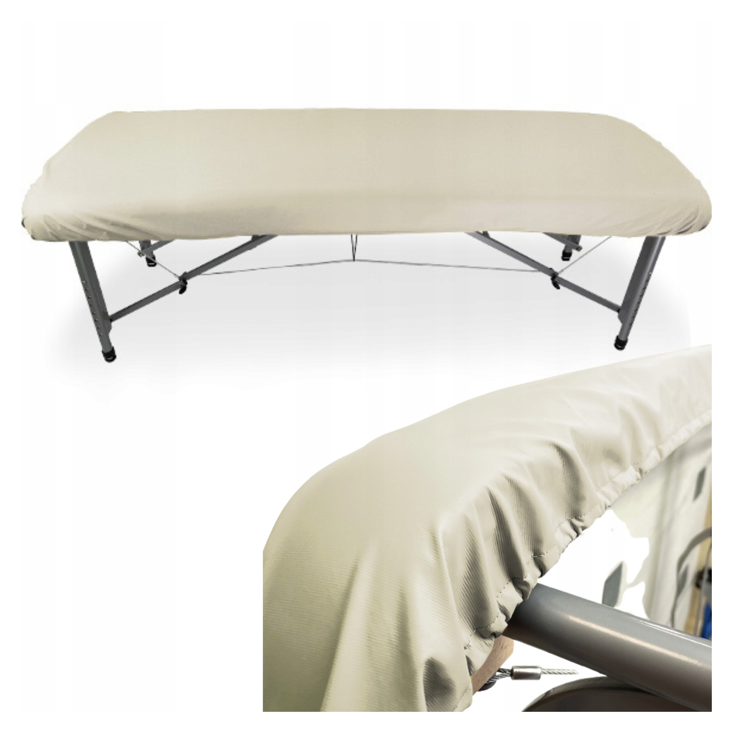Це покриття забезпечує захисний бар'єр для столу, а також запобігає його забрудненню оліями чи іншими косметичними засобами. Він приємний на дотик, додатково має сертифікат OEKO-TEX, сертифікат Польського інституту гігієни та відповідає нормам регламенту REACH. Покривало доступне в 2-х розмірах: 64 х 184 см і 71 х 184 см.