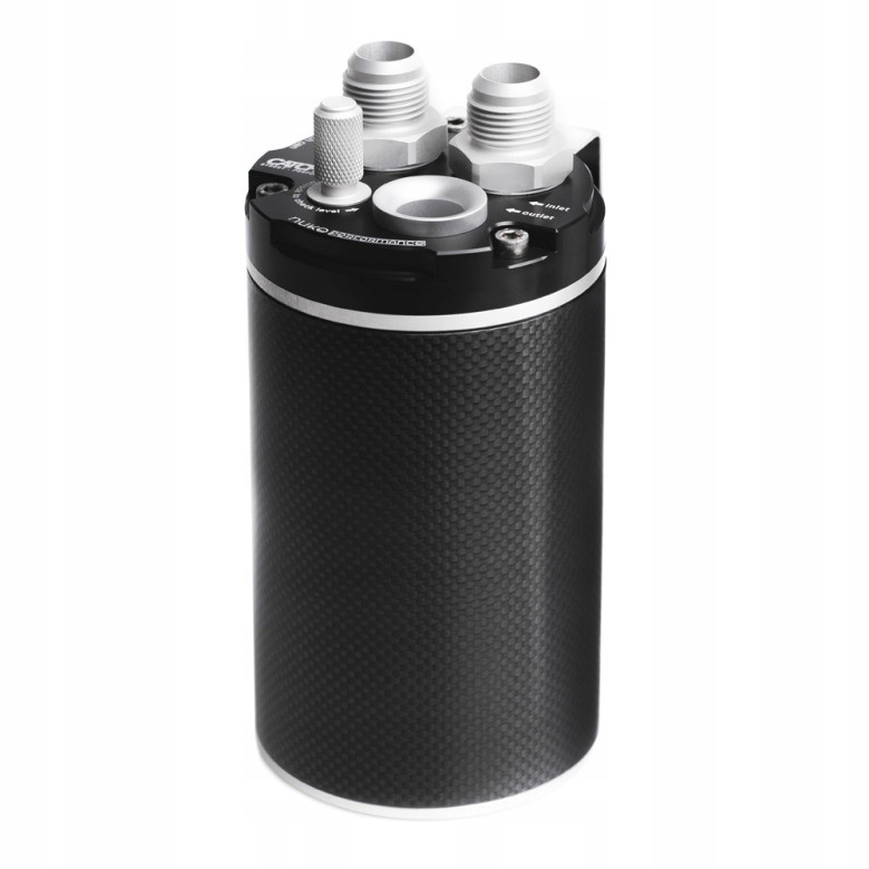 Універсальний маслозбірний резервуар Nuke Performance Carbon об'ємом 0,75 л з подвійним фільтром. Призначений для використання в змаганнях і автоспорті, а також для тюнінгу. Повний комплект для конфігурації з одним або подвійним входом і атмосферної чи рециркуляційної.