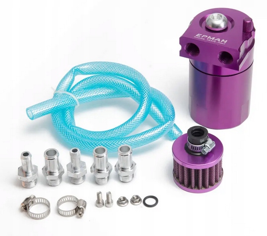 Epman Pro Oil Catch Tank – універсальний масляний бак для пневмотораксу, створений вони думають про захист вашого двигуна та покращення його параметрів. Ця передова система працює шляхом конденсації масляних парів, усуваючи можливість їх потрапляння у впускний отвір, що, у свою чергу, захищає камеру згоряння від нагару.
