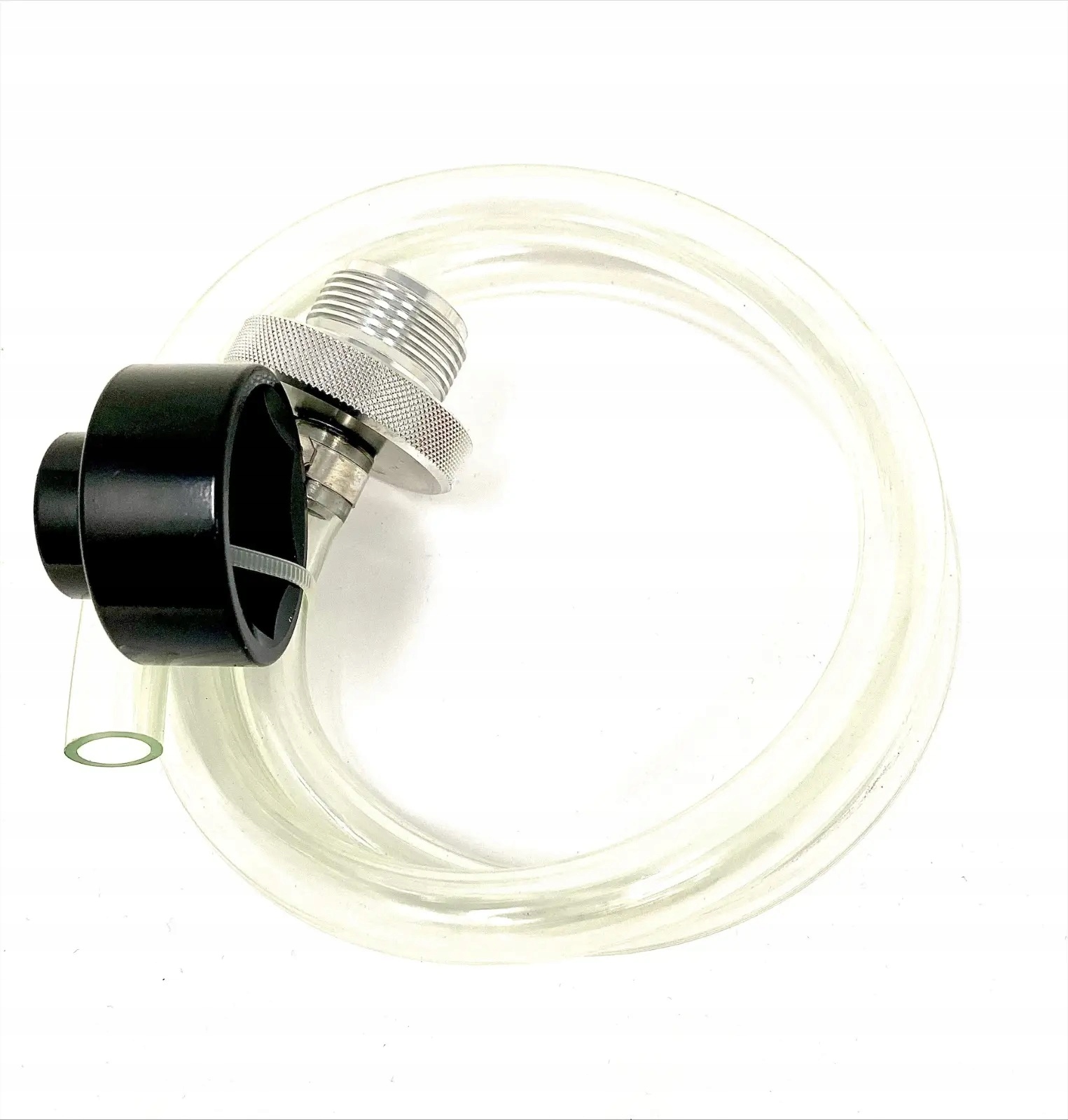 Зливний шланг має перехідник, який, пригвинчений до масляного фільтра, відкриває клапан, і масло тече через прозорий шланг.