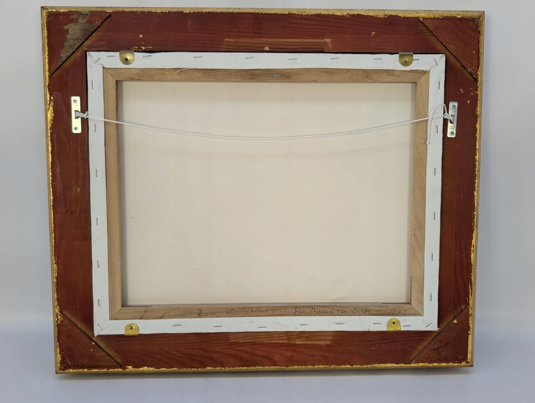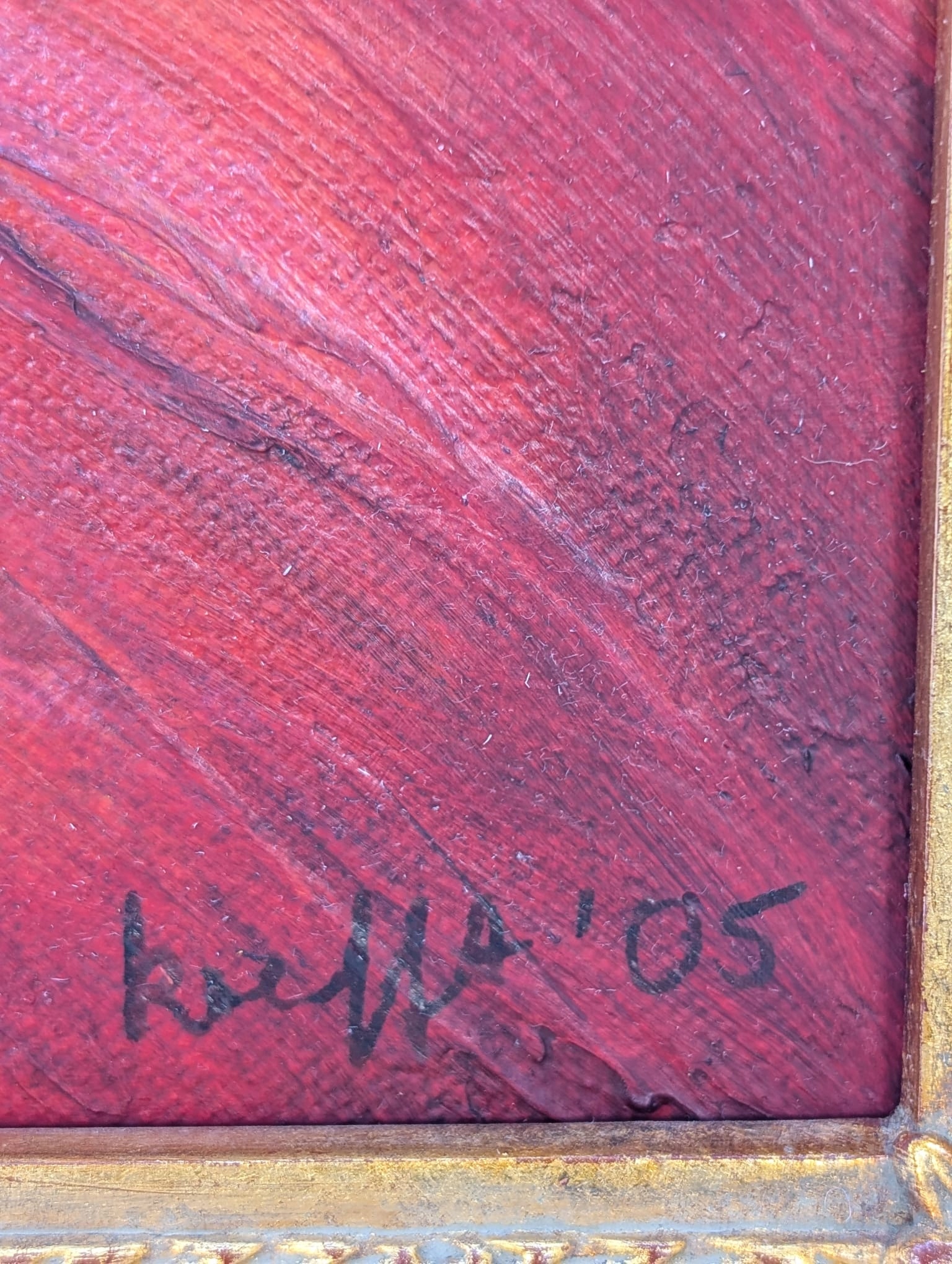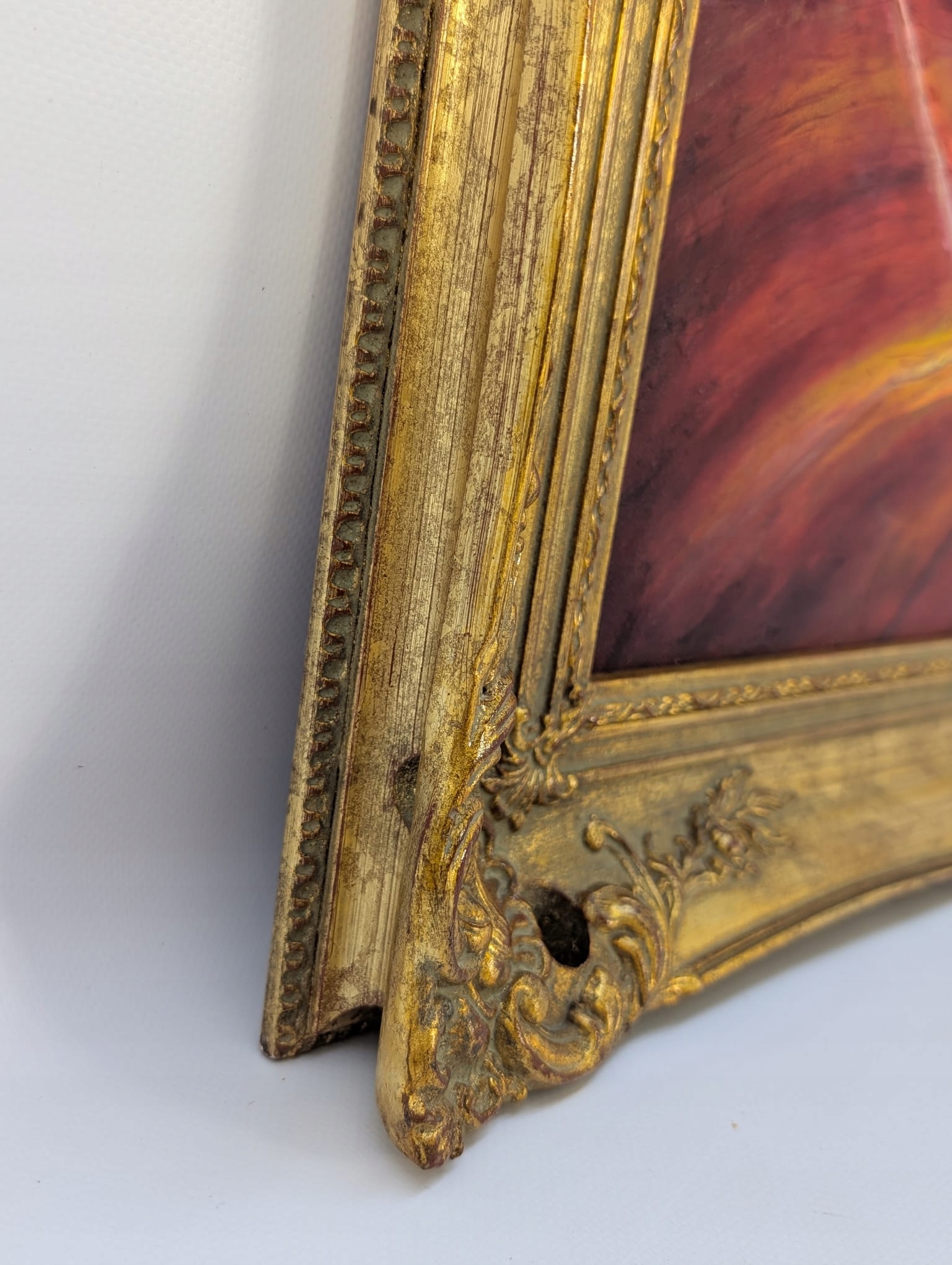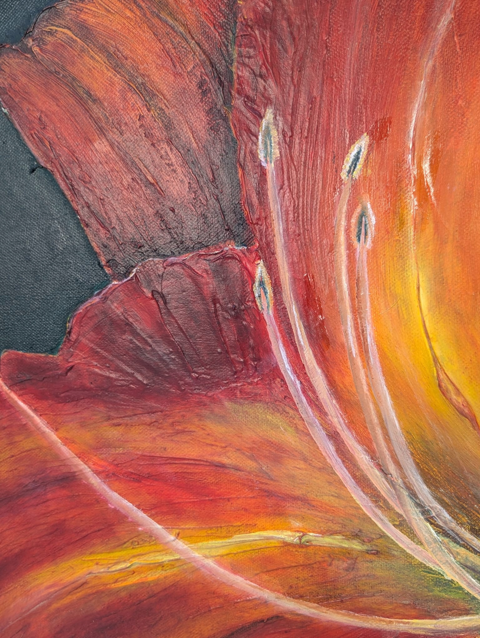 Картина із зображенням квітки ЛІЛІ, написана на полотні в техніці олії в позолоченій дерев’яній рамі з гарним декором.