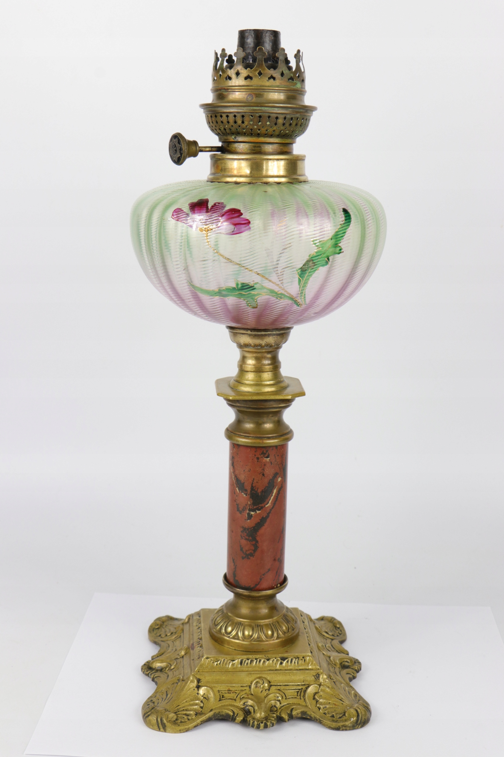 Масляна лампа в стилі модерн, скло, емаль, мармур, бронза, 1900 р., Франція