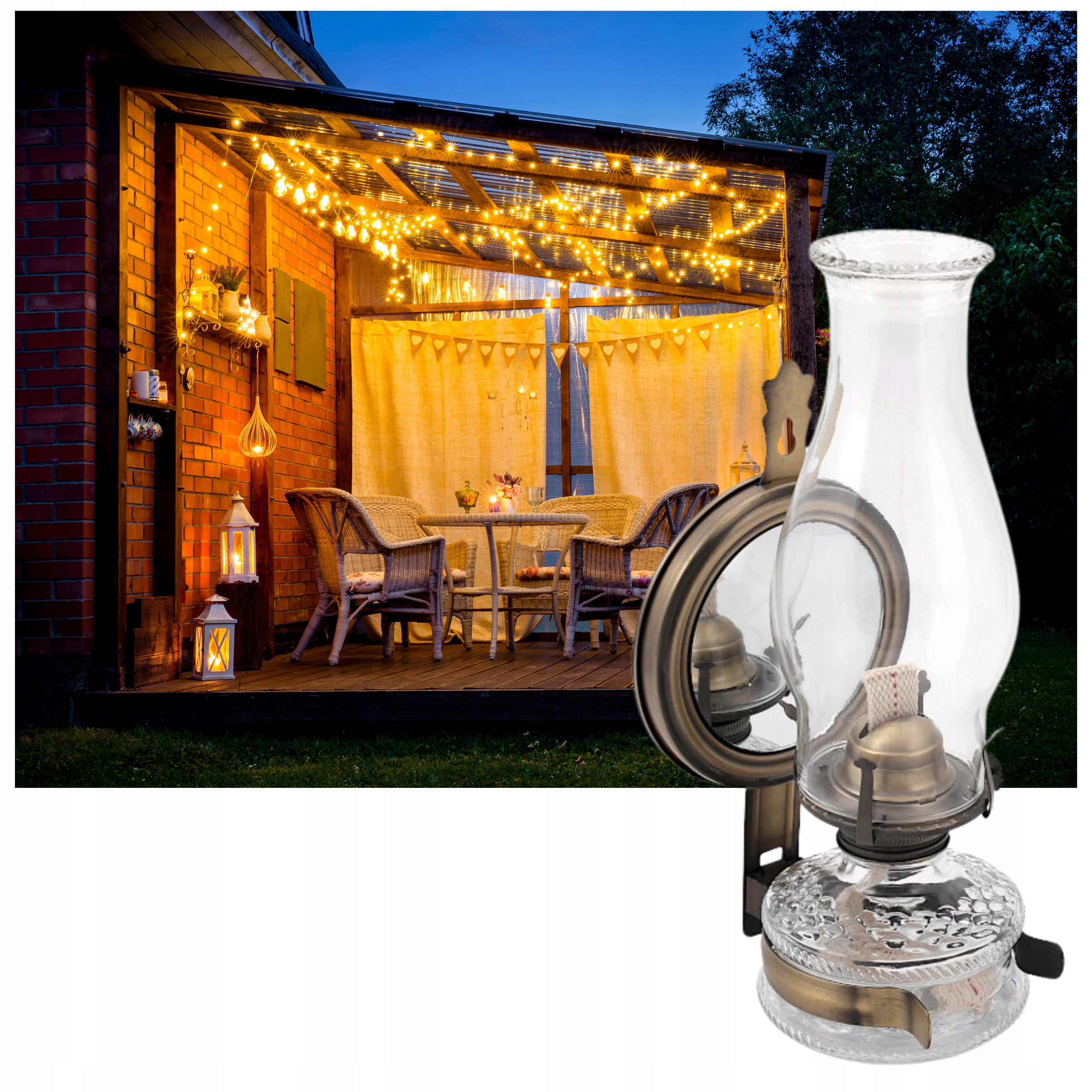 Масляна лампа MAXI Old Brass 31 см із дзеркалом ідеально підходить для використання вдома, у підвалі, в саду чи на терасі. Це забезпечить приємне освітлення та неповторну атмосферу.