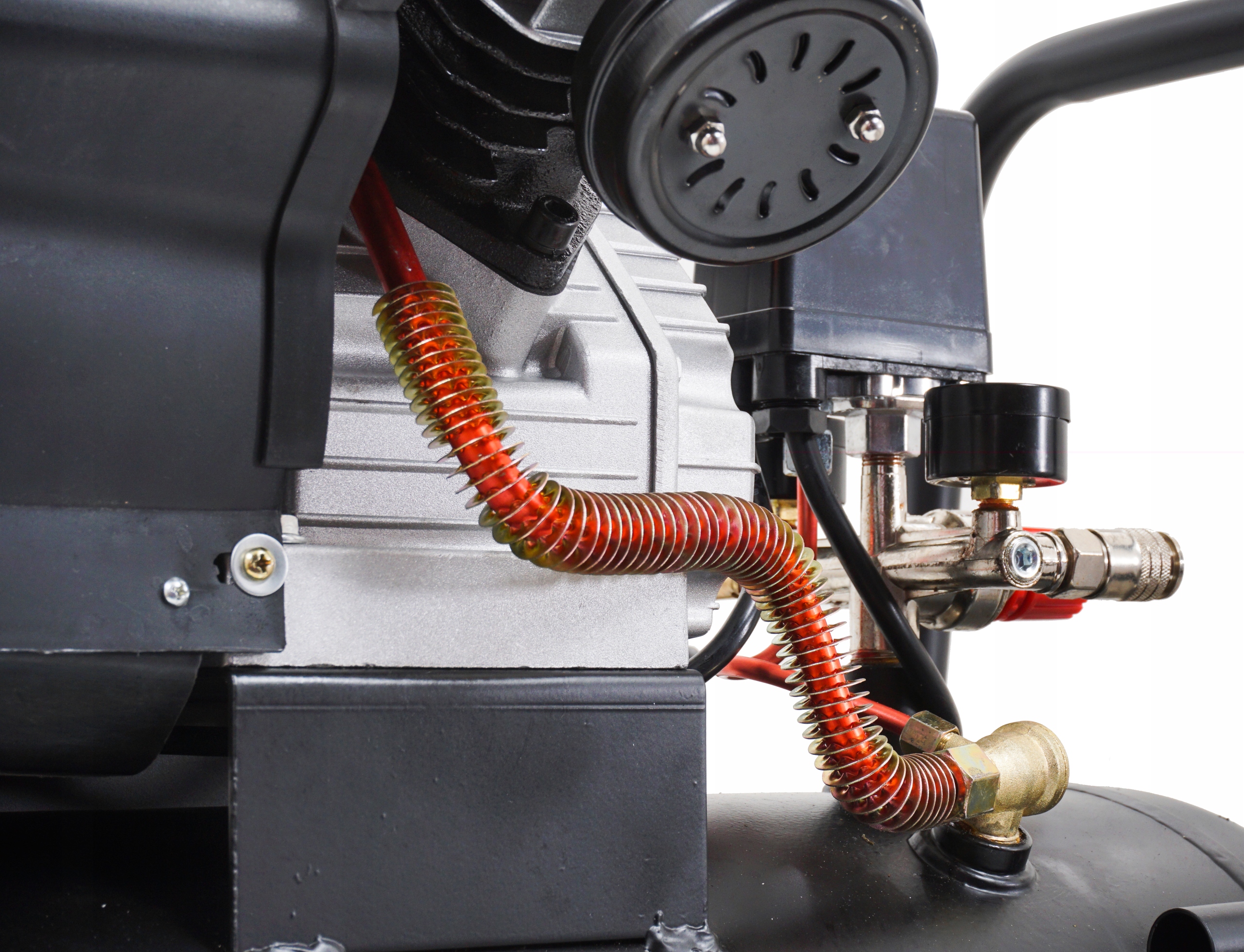 Компресор має редуктор тиску, оснащений інноваційним механізмом регулювання та простим у користуванні зливним краном.