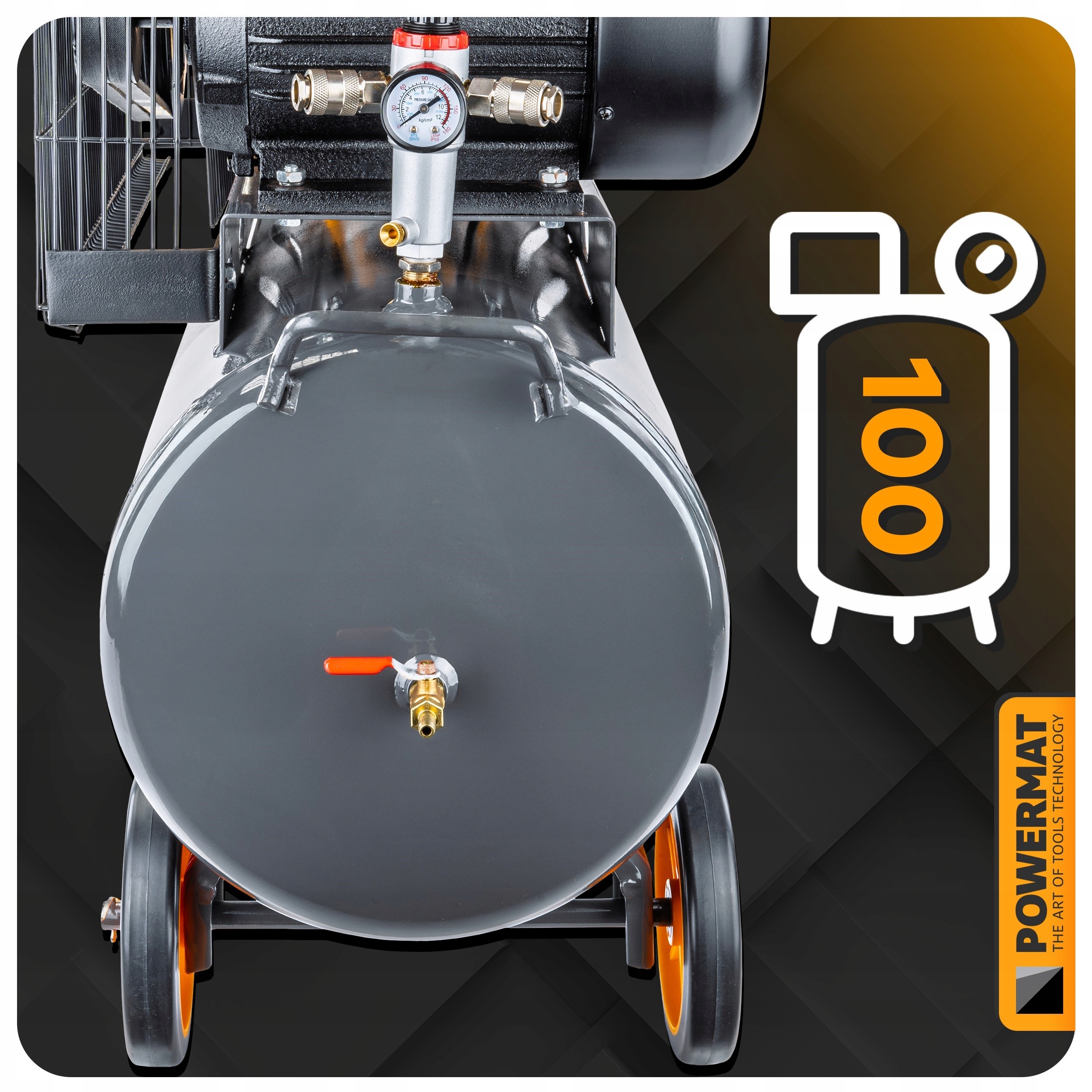 Компресор Powermat - ефективний і надійний пристрій з тиском 8 бар і продуктивністю 650 л/хв. Завдяки двигуну потужністю 4 к. с. він характеризується низьким енергоспоживанням і універсальністю таких застосувань, як фарбування, перекачування та чищення. Оснащений регулятором тиску, п'ятьма виходами з роз'ємами «ЄВРО» і запобіжним клапаном.