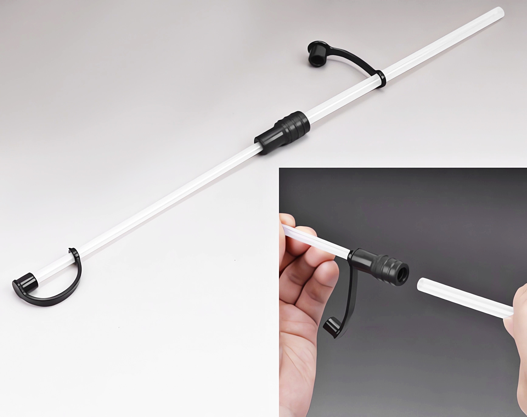 Всмоктуючий пристрій оснащений 2 спеціальними гнучкими шлангами довжиною 215 мм і 225 мм діаметром 6 мм і 4 мм, який ви вставляєте в маслоналивний отвір. Таким чином можна дістатися практично до кожного бака і збільшити робочу ємність шприца. Крім того, шланги оснащені заглушками, які запобігають розливанню вмісту.
