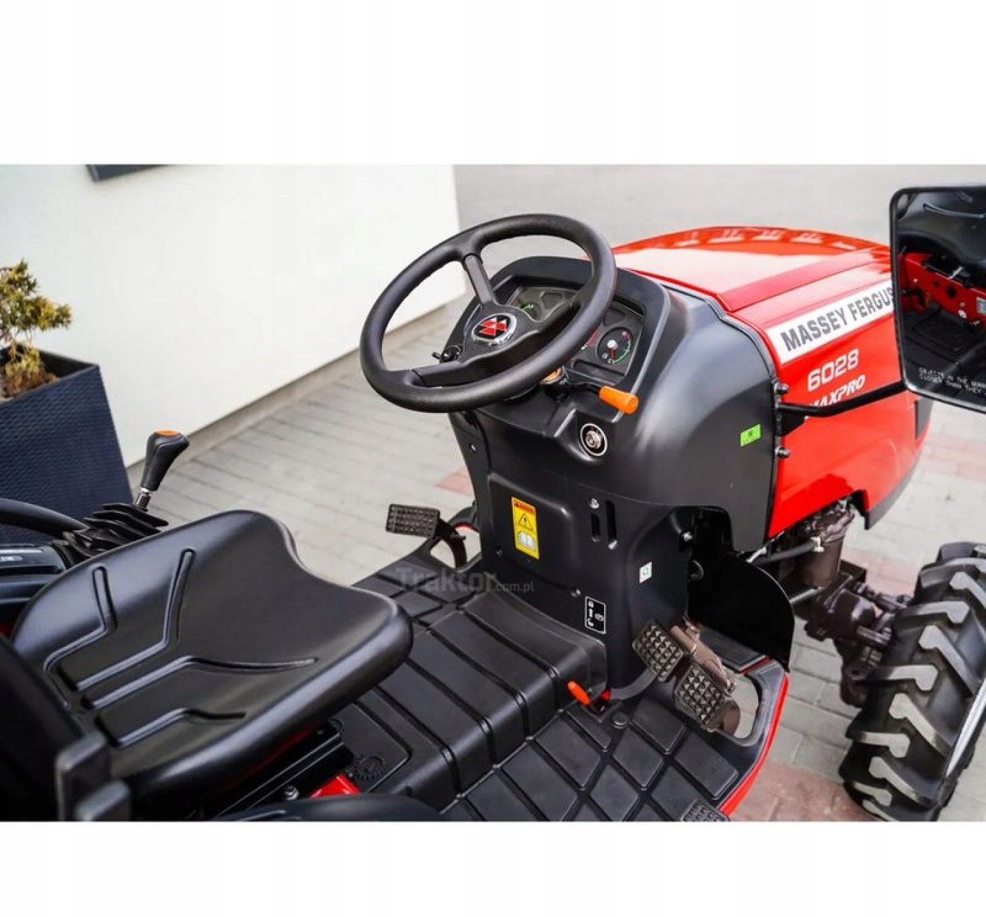 Трактор Massey Ferguson 6028 — компактний міні-трактор з повним приводом 4x4, гідропідсилювачем керма та 3-циліндровим дизельним двигуном Mitsubishi MVS3L2 TIII A. потужністю 28 к. с. (20,58 кВт). Трактор має сільськогосподарську гуму (можлива заміна на трав'яну - додаткова опція), дві швидкості ВВП/ВОМ, 3-точкову задню 3-точкову навіску Cat I вантажопідйомністю 739 кг. Трактор оснащений механічною коробкою передач з 6 передачами переднього ходу і 2 передачами заднього ходу, а також шасі з герметичною передньою віссю з багатодисковими гальмами, зануреними в масло, що робить водіння моделі MF6028 дуже безпечним. Ідеально продумані деталі конструкції, такі як рівна підлога, зчіпний пристрій, передній буксирний гак або інтуїтивно зрозумілі важелі керування, у поєднанні з чіткою та сучасною панеллю приладів роблять роботу з трактором Massey Ferguson великим задоволенням.