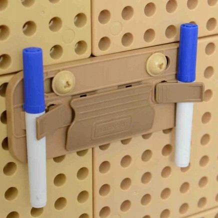 Освітня дошка Masterkidz STEM Wall Board дозволяє творчо грати та пізнавати світ науки. Панелі мають отвори, в які можна вставляти різнокольорові шпильки для створення красивих візерунків. Також на дошку можна кріпити різноманітні навчальні посібники, шестерні, трубні системи з насосом та інші цікаві елементи.