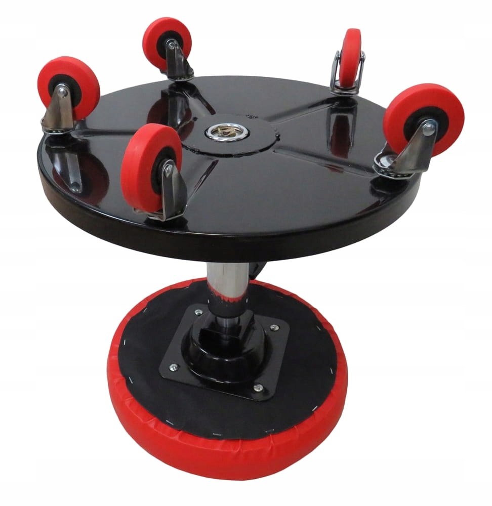 Крісло для майстерні з посиленою сталевою конструкцією, з п’ятьма колесами на 360 градусів, що забезпечує вільне пересування під час роботи в майстерні, яка виконується сидячи.