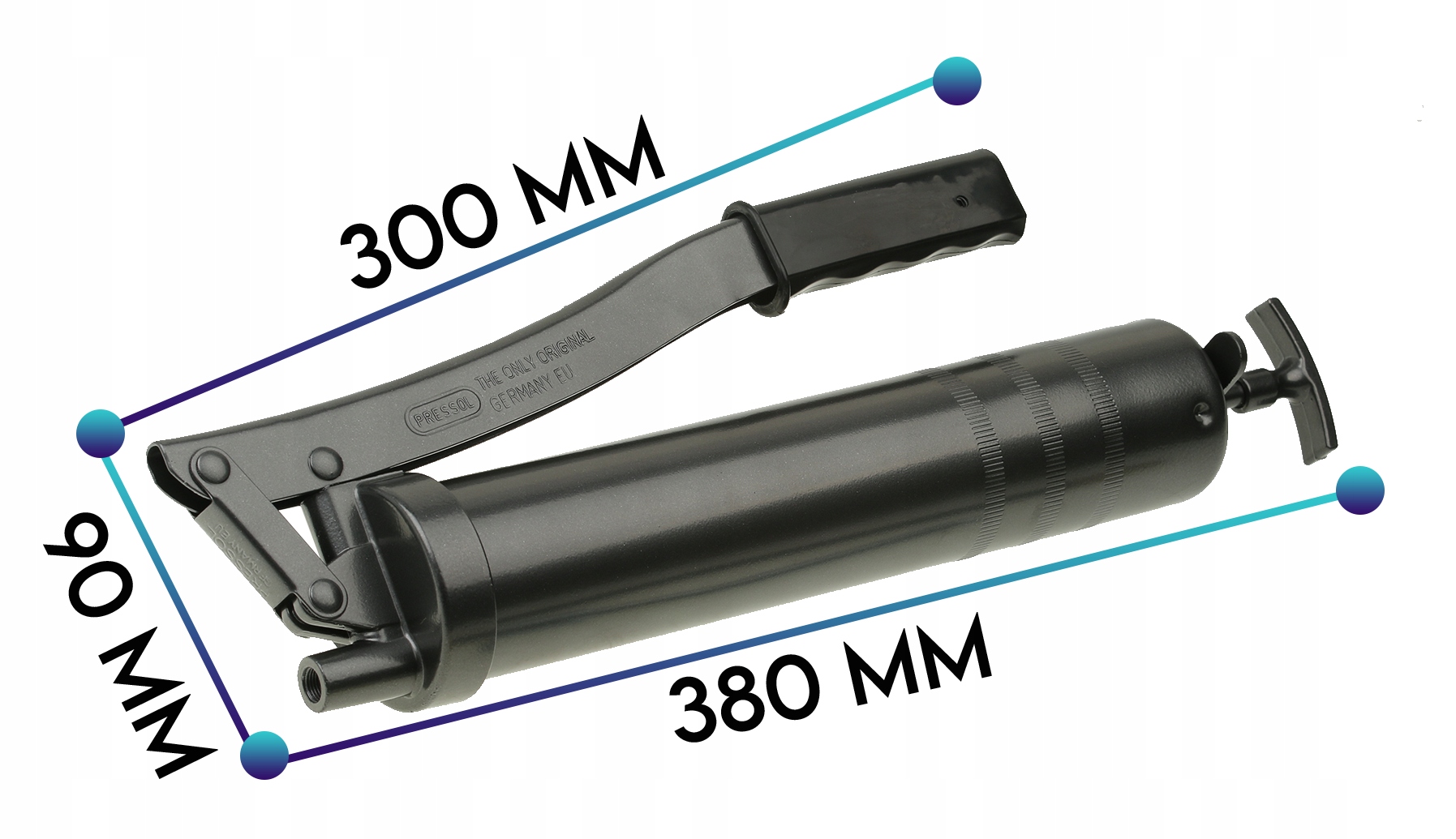 - Ручний мастильний пістолет із високою силою натискання та максимальною ємністю 500 мл.