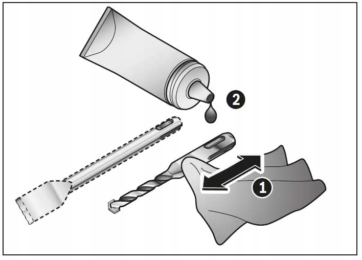 - Мастило Bosch у тюбику призначене для обслуговування свердел SDS Plus і SDS Max li>