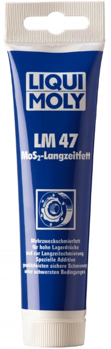 Високо універсальне мастило з додаванням дисульфіду молібдену (MoS2) - LIQUI MOLY LM 47 Langzeit Fett - це призначений в основному для змащування високонавантажених підшипників кочення і ковзання, що працюють в різних машинах, а також для з'єднань, напрямних, валів і ін. Продукт дуже стійкий до вимивання водою та впливу легких кислот і лугів.