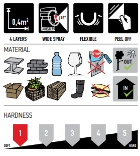 Після нанесення кількох шарів утворюється рівна гладка поверхня, відносно стійка до механічних пошкоджень, яку легко видалити, відірвавши.