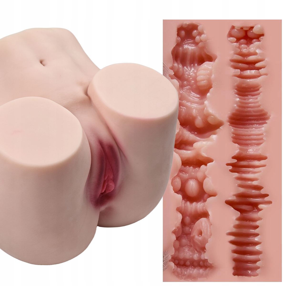 Сучасний 3D мастурбатор з виступами та смужками всередині для інтенсивної стимуляції та масажу по всій довжині пеніса. Сильна та округла основа та вигин талії. Пухка текстура шкіри - це її унікальний дизайн із мурашками та зморшками на поверхні шкіри. Доторкніться до цієї іграшки, і ви побачите, як вона ніжно похитується, відчуєте її еластичність і чарівність. Виріб оснащений двома входами: вагінальним і анальним, а також незалежними каналами для введення, тому ви можете використовувати цей гаджет більш вільно. На дотик відчувається справжня шкіра. Один раз у піхву, один раз в анус... як завгодно. Ця вагіна завжди гнучка і готова. Реалістична, як справжня жіноча попа. З кожним входом ви відчуєте незліченну кількість ударів і ударів. Отвори будуть ідеально відповідати розміру вашого пеніса. Кожна деталь ретельно розроблена, а статеві губи та клітор також вишукані, приносячи вам природне задоволення. Виріб водонепроникний. Лялька виготовлена з безпечного та реалістичного матеріалу - TPE. Вишукана робота гарантує користувачам приємні та повне задоволення. Волога піхва висувається і може підлаштовуватися під різні розміри пеніса відповідно до потреб кожного чоловіка. Торс секс-ляльки вкритий тальком, щоб він залишався сухим, без бруду та якості!