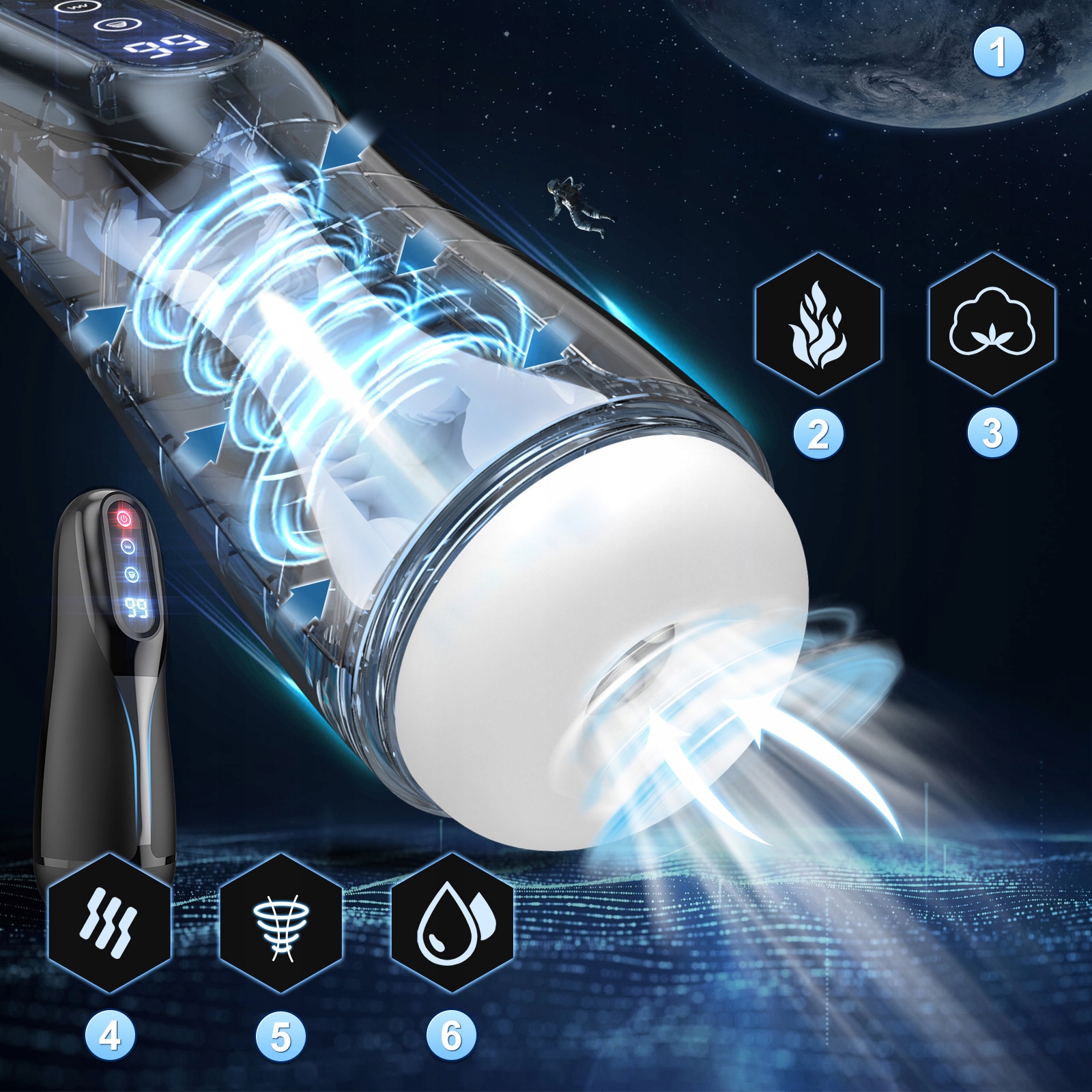 мастурбатор з функцією всмоктування, вібрації, підігріву