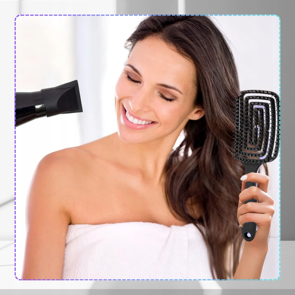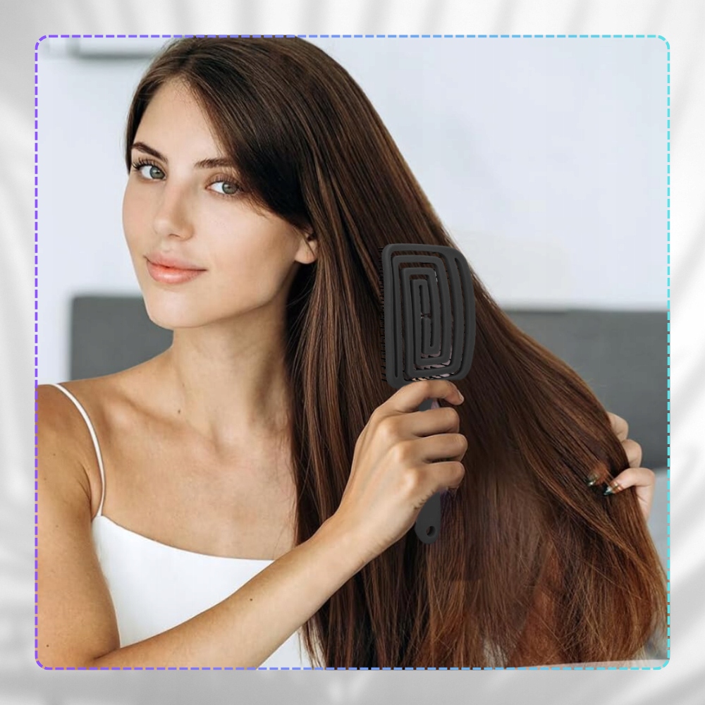 Masująca Szczotka do wszystkich rodzajów włosów czarna elastyczna płaska