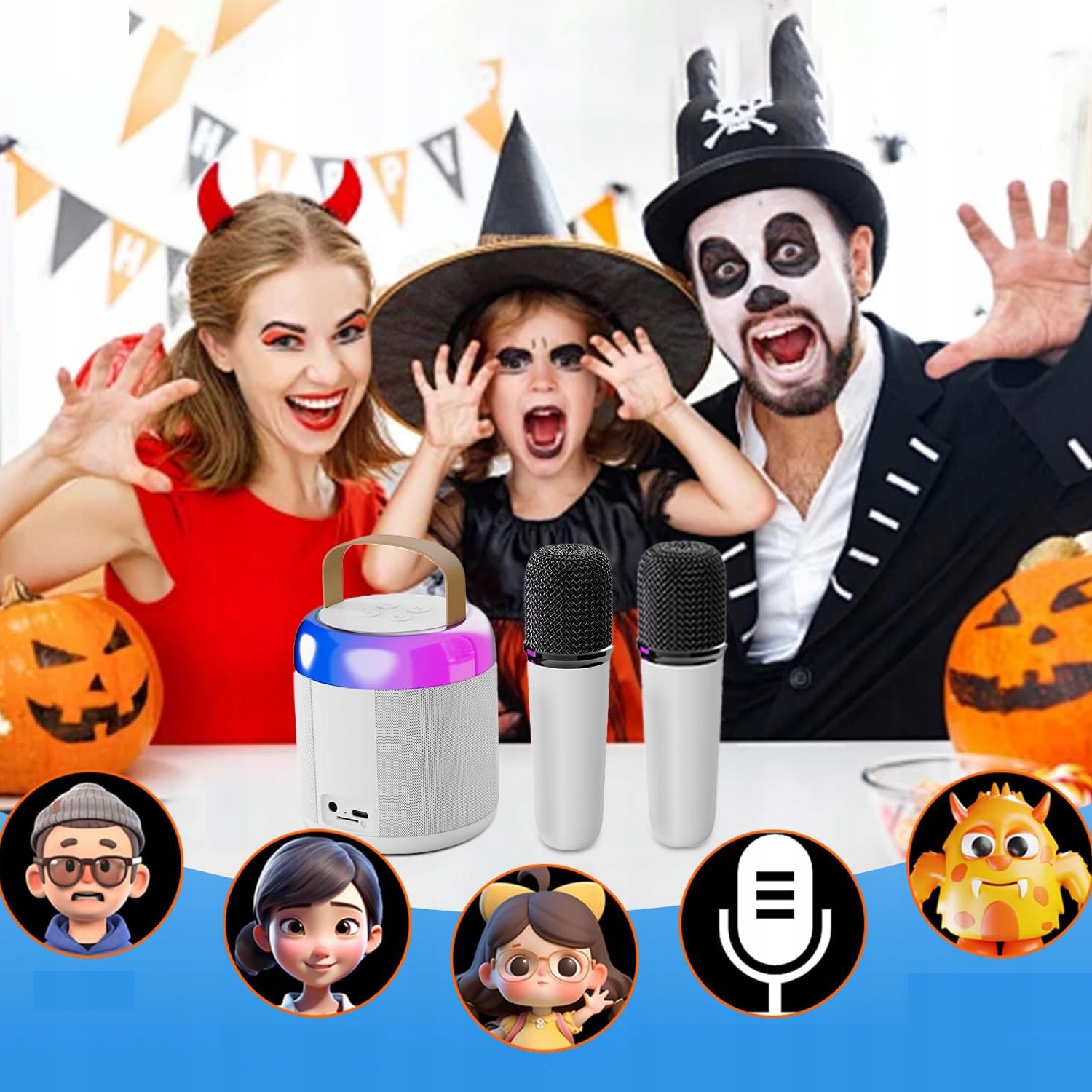 MASZYNA DO KARAOKE Z 2 BEZPRZEWODOWYMI MIKROFONAMI, GŁOŚNIKÓW BLUETOOTH 5.3
