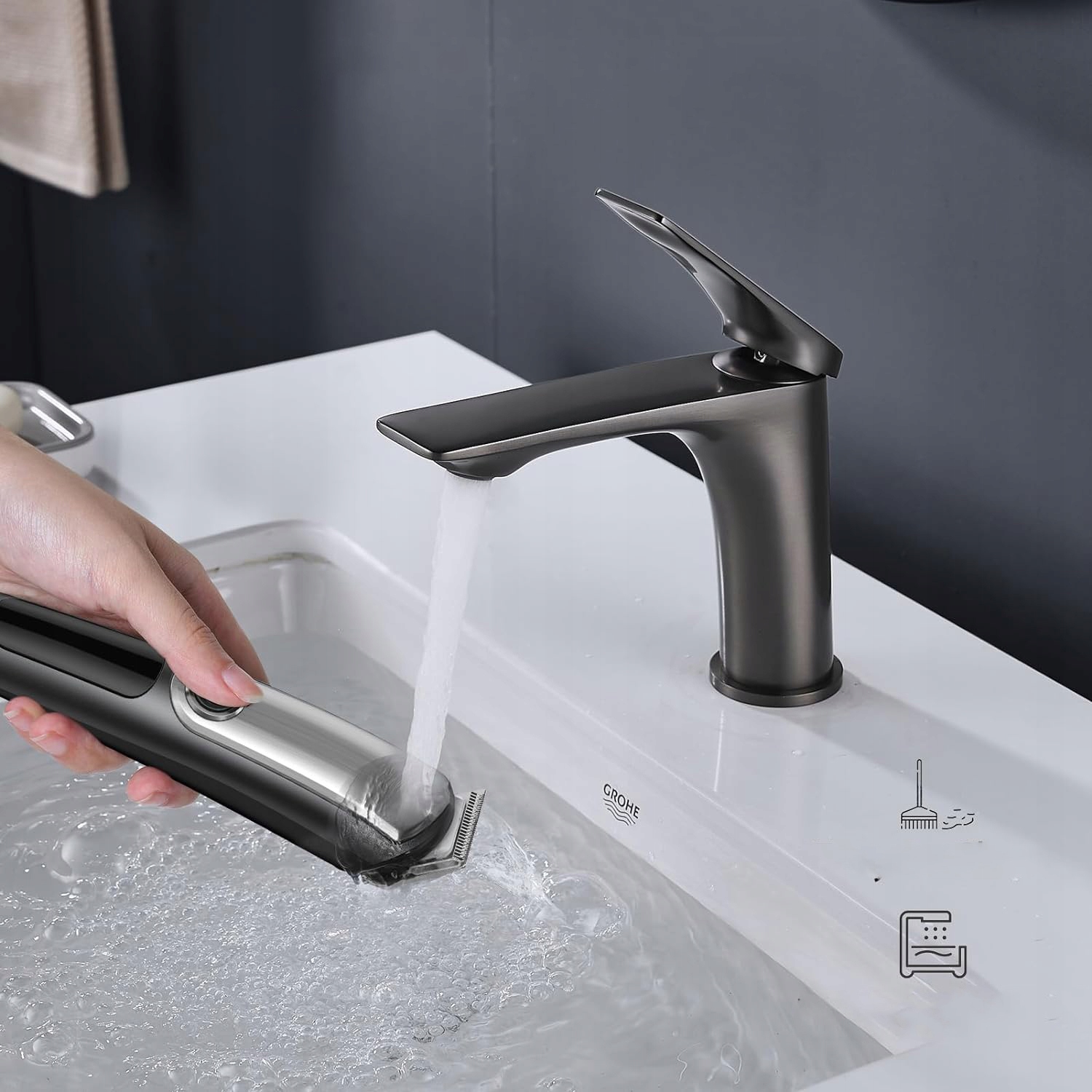 b> - Наша вдосконалена електрична бритва для чоловіків оснащена потужним двигуном із частотою обертання 7500 обертів на хвилину та високоефективним лезом із нержавіючої сталі для швидкого та ефективного підстригання, не стягуючи та не подразнюючи шкіру. Леза знімні та миються. Щоб очистити їх швидко та гігієнічно, просто промийте їх під проточною водою. (Примітка: не занурюйте весь тример у воду)