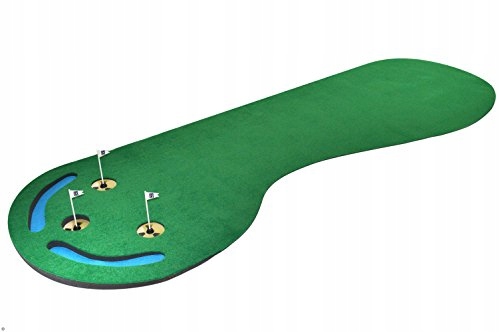 Потренуйтеся чіплятися та надягати цей зелений гольф у формі нирки. Якщо м’яч не падає в чашку, поролоновий килимок повертає м’яч гравцю в гольф. Поверхня поліетиленової трави імітує бермудську траву, щоб створити автентичне відчуття. Цей великий зелений має три отвори для створення різних завдань. Штучне покриття класу люкс відтворює стандартні турнірні трави. Чудовий інструмент для відпрацювання патингу як у приміщенні, так і на вулиці. Додаткові небезпеки розташовані з обох боків від лунок, щоб збільшити складність і ловити пропущені удари.