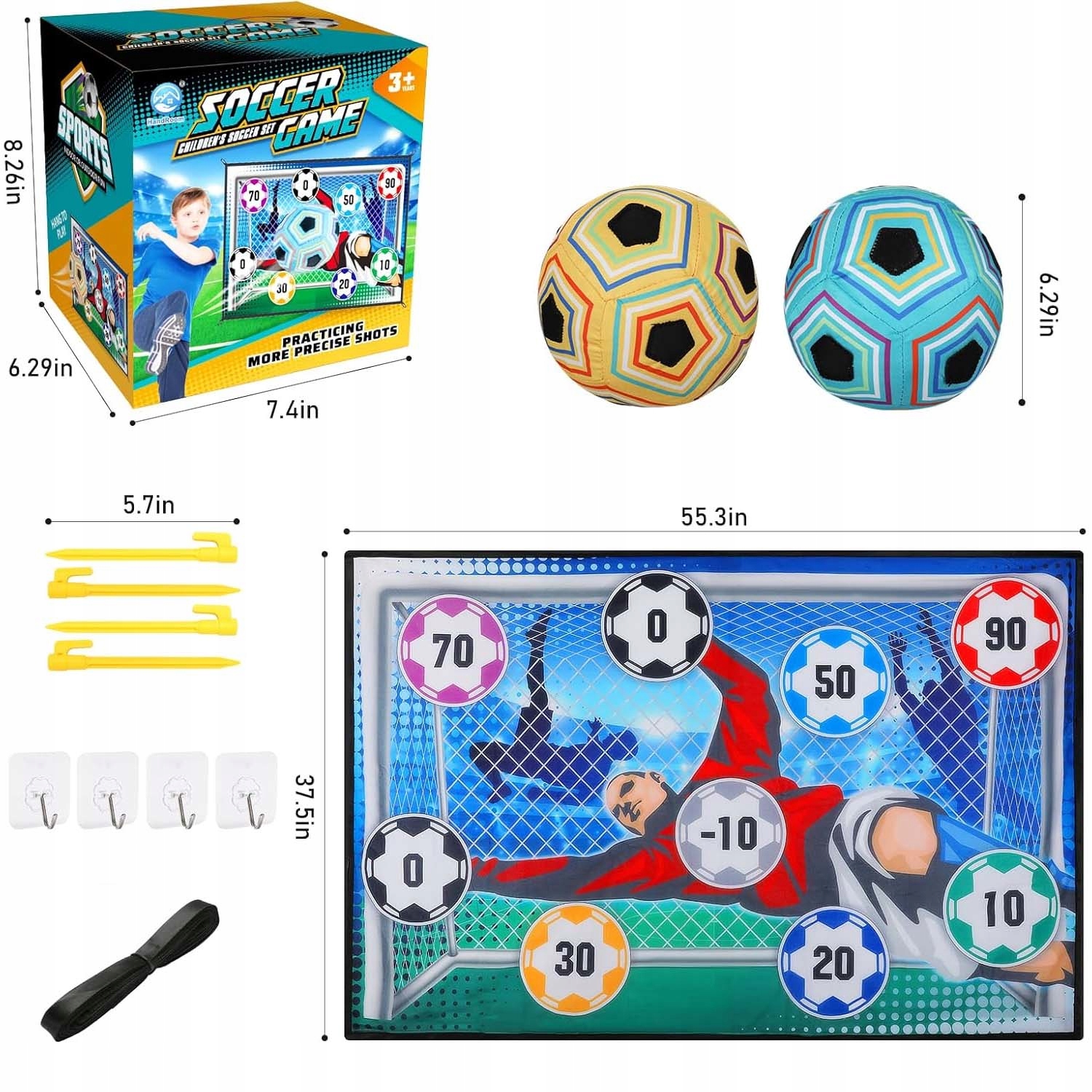 Футбольний ігровий комплект простий у встановленні. Просто повісьте гол на стіні і почніть грати у футбол. Переможець або загублений визначається на основі результату або ви та ваша дитина можете придумати ваші власні правила. Цей набір може практикувати у дітей рухові навички та координацію рук та інші навички координації.