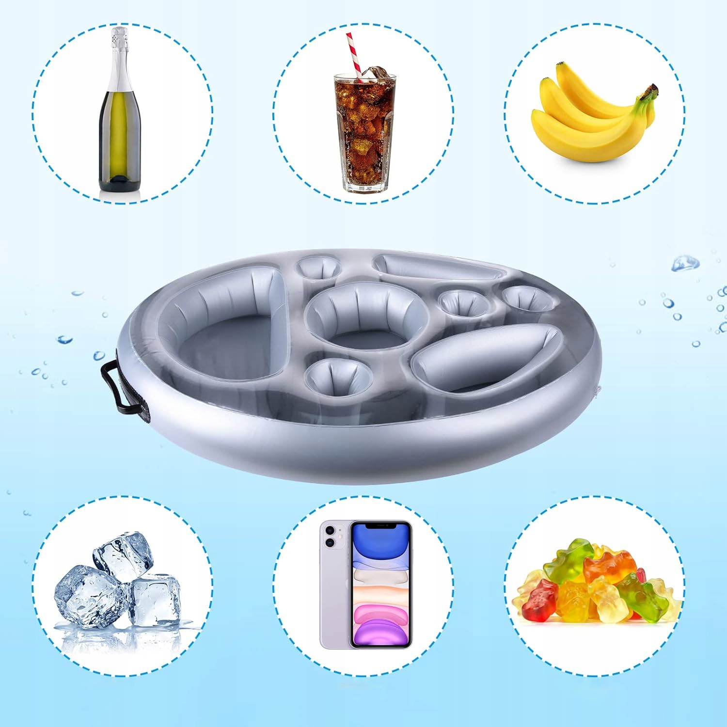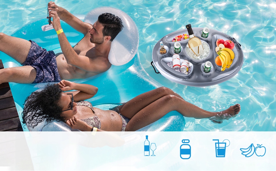 🏡 плаваючий килимок з 8 отворами для зберігання для літньої вечірки біля басейну, гарячим джерелом, спа -центром на пляжі ›