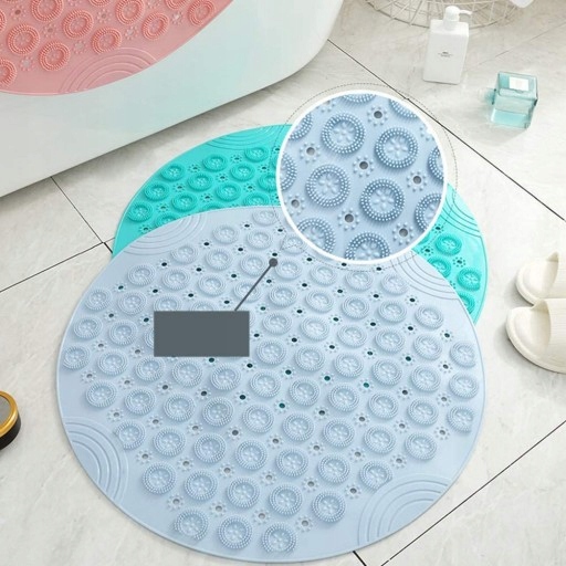 100% ПВХ. Безпечний і нетоксичний, вимийте і висушіть перед використанням. Круглий 55*55 см, підходить для більшості ванних кімнат.