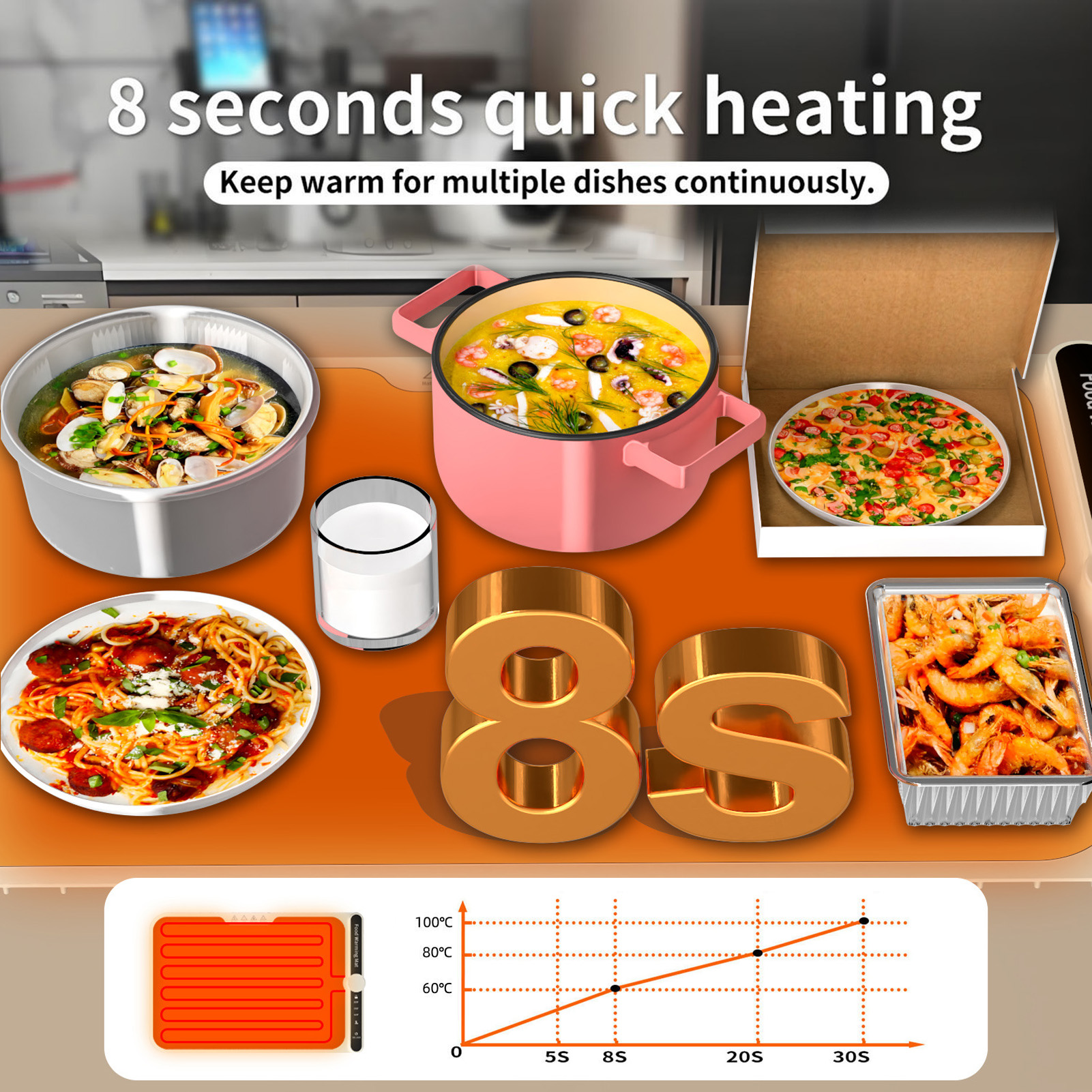Mata do podgrzewania żywności 330 W Ogrzewanie caą powierzchnią w 8 s DX