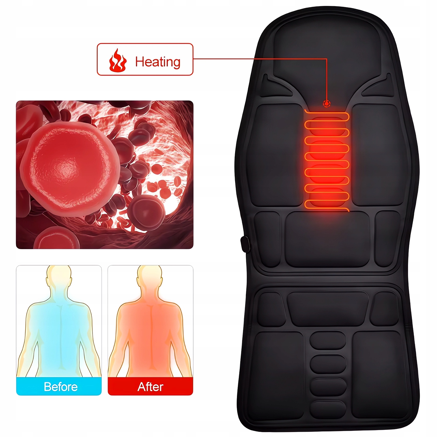 MATA MASUJĄCA GRZEWCZA NA FOTEL AUTA DO MASAŻU PLECÓW CIAŁA GRZANIE 12V