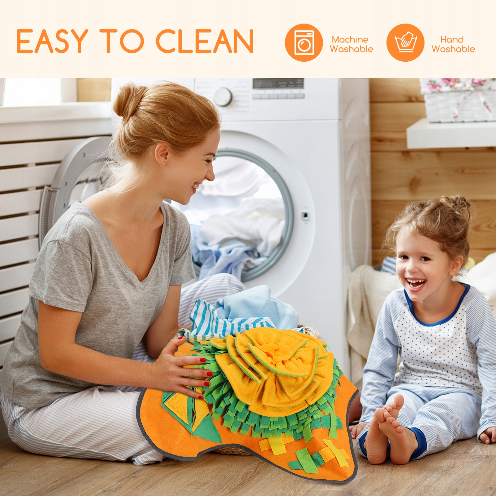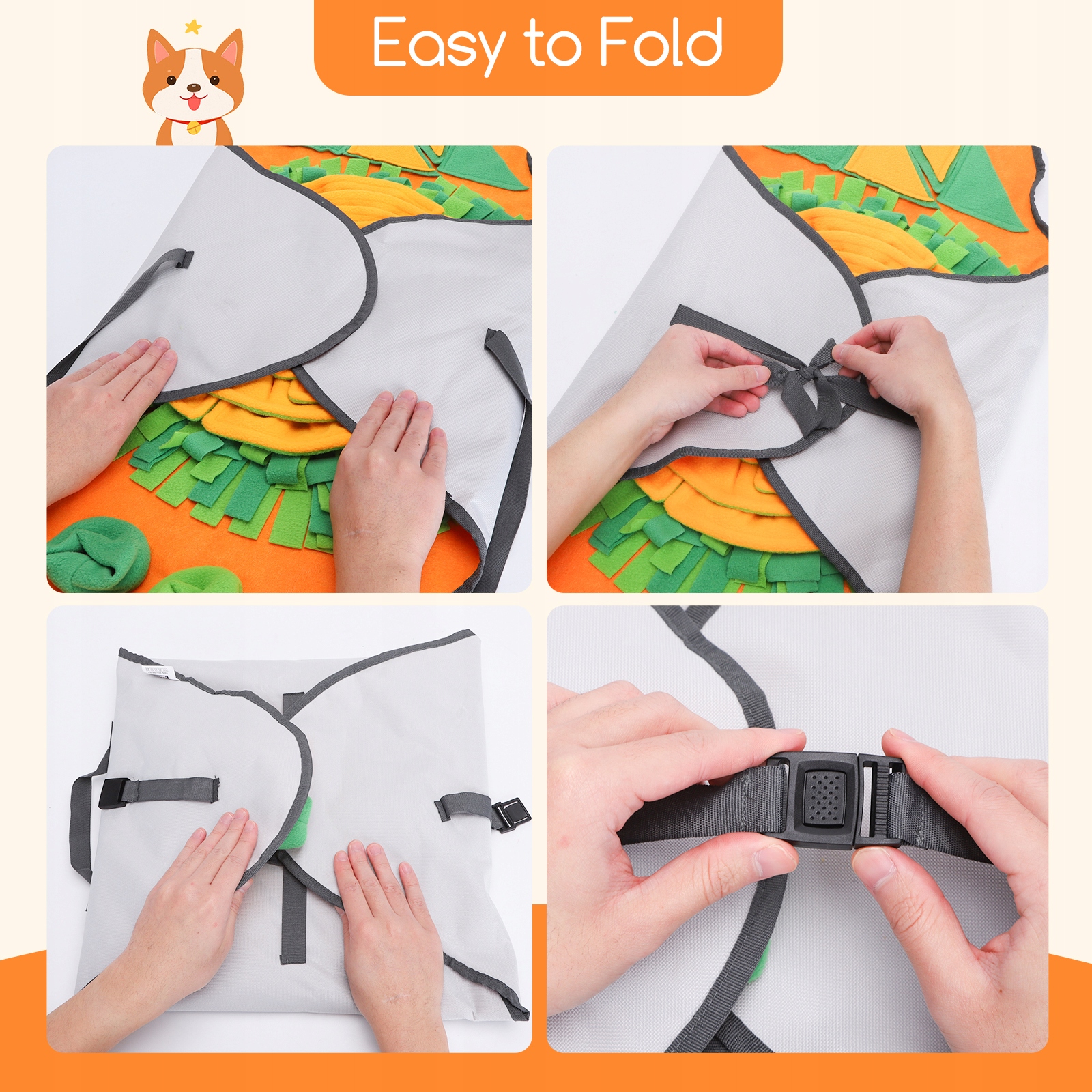 Низ цієї нюхальної табаки виготовлено з оксфордської тканини, яка є стійкою до плям і протиковзкий. Поверхня виконана з м'якого фетру, а шкіра - з екологічного флісу. Можна прати в машині або вручну. Цей універсальний килимок для нюхання міцний і стане чудовим доповненням до тренувальних іграшок для вашої собаки.
