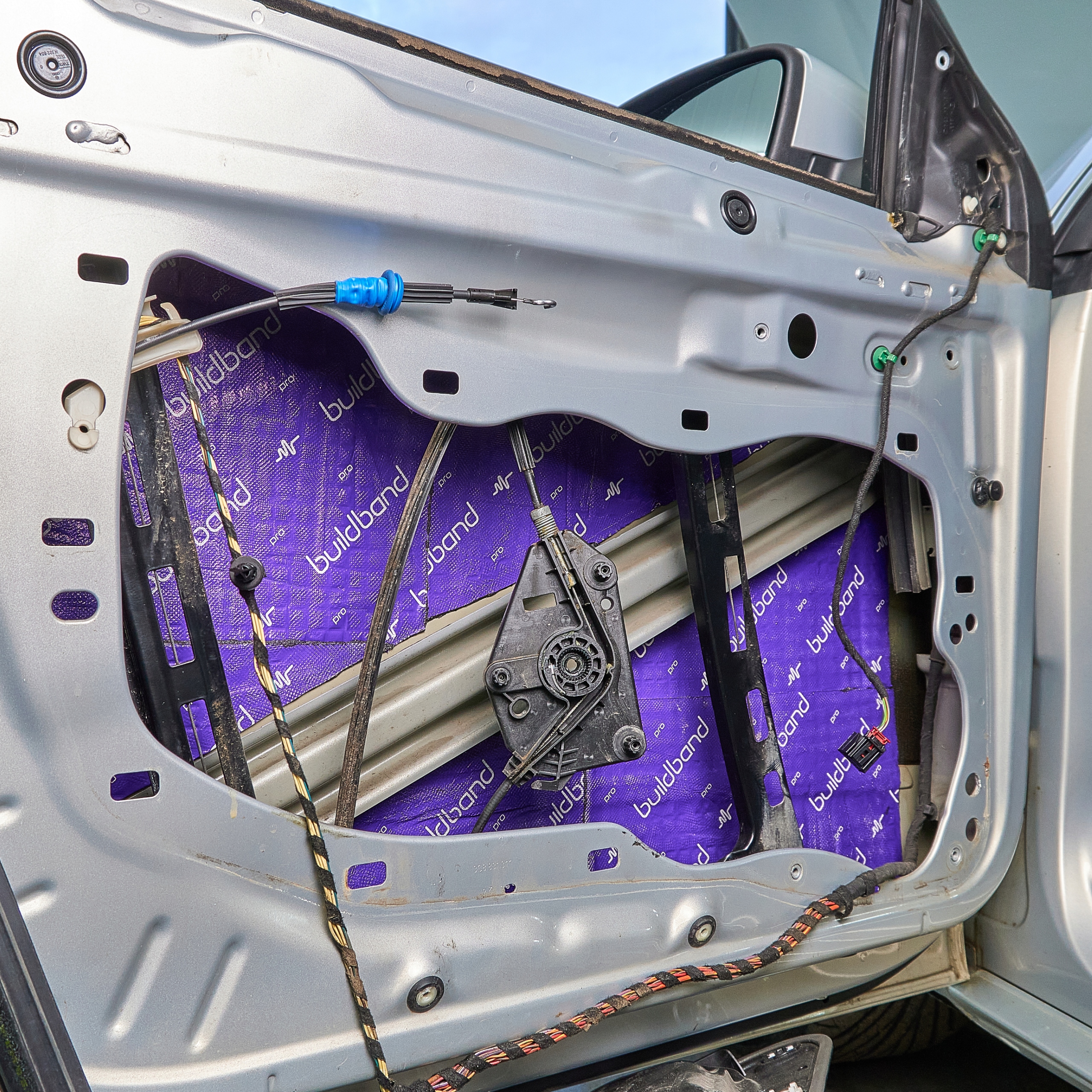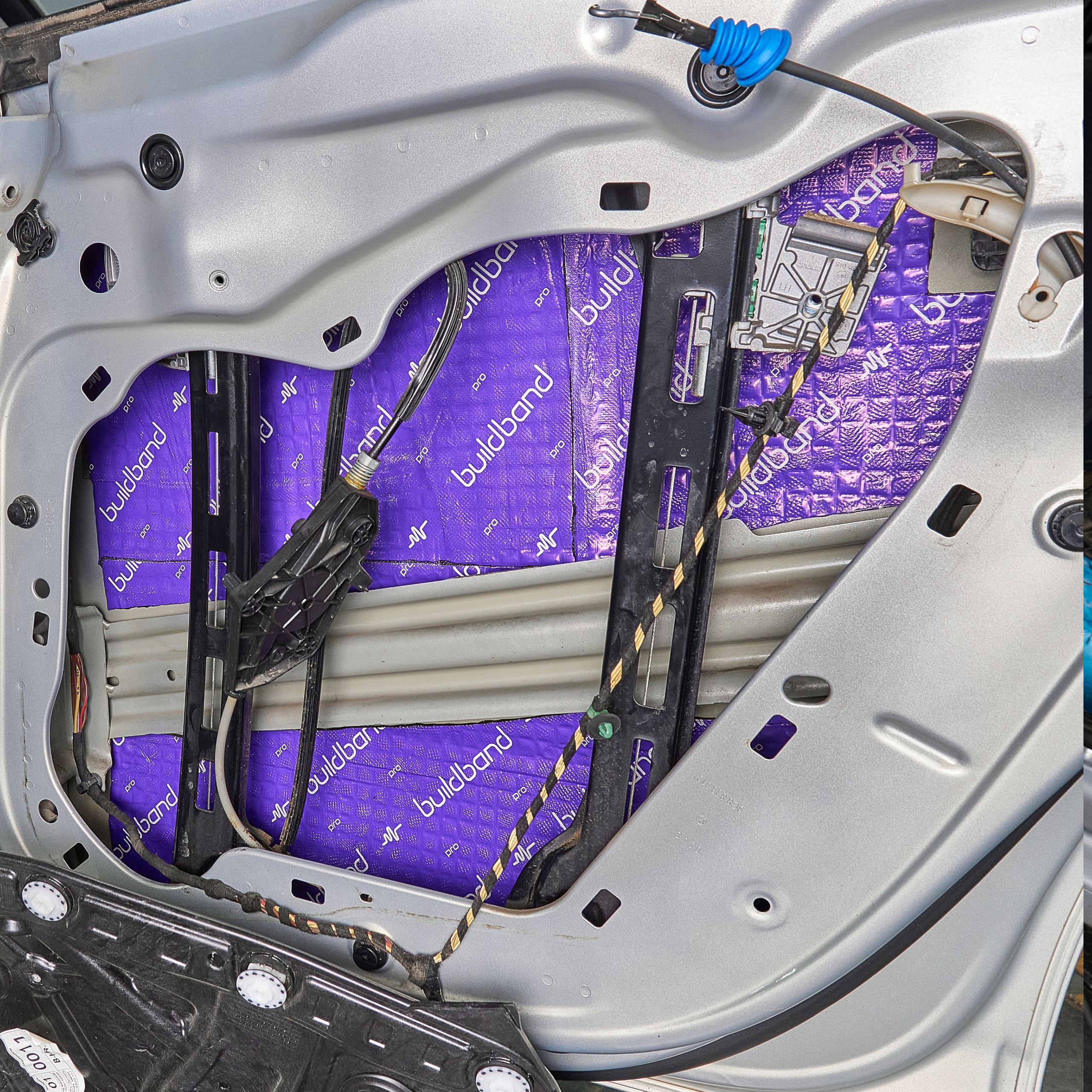 Звукопоглинаючий та віброізоляційний матеріал Buildband BASIC має високі ізоляційні властивості, які ефективно зменшують шум і вібрацію двигуна, шум коліс, дорожній шум і погодні умови.