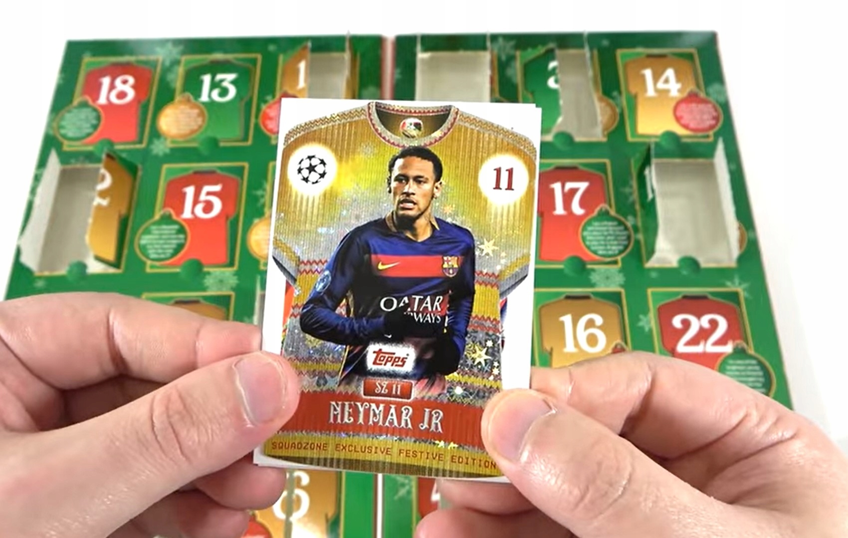 (кожний пакетик містить 1 картку Squadzone Festive Edition, так звані картки дрібнички, на яких ви знайдете, серед інших, таких гравців, як Ямал, Беллінгем і Неймар, а також 4 паралельні карти з різдвяної колекції edition)