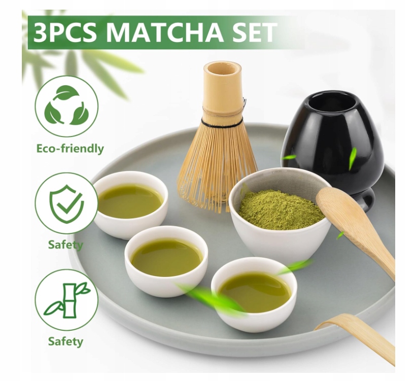 - Висока якості церемонія матчі. Набір включає Miotheł до Matcha, який виготовлений з міцного бамбука - довговічного та екологічно чистого. Бамбукова мітла була спеціально розроблена для приготування чаю Matcha, щоб отримати оптимальну структуру піни.