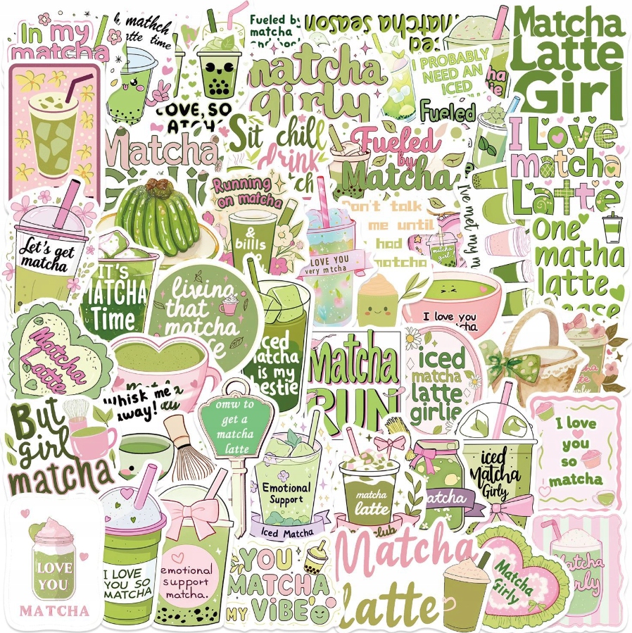 Набір із 50 наклейок із мотивом матча - ідеально підходить для любителів зеленого чаю, матча латте та спокійної природної атмосфери.