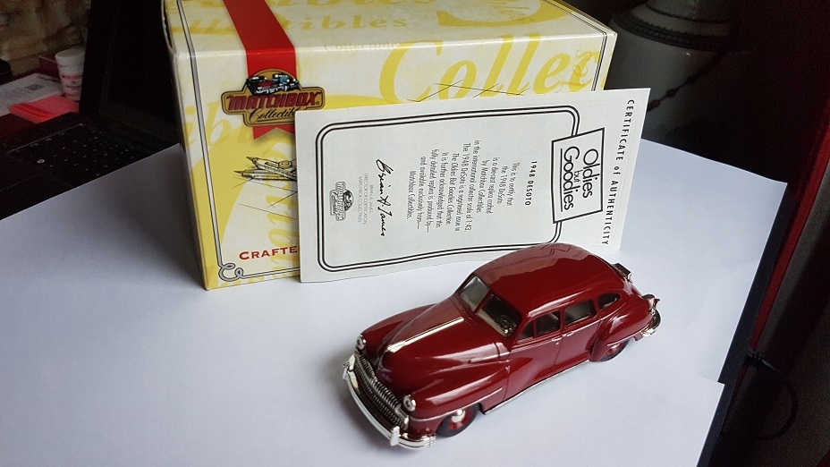 Привіт. Пропоную на продаж Matchbox Collectibles DESOTO 1948 року випуску. Унікальний - білий ворон. Стан на фото, масштаб 1:43 розміри: довжина 12,5 см, ширина 4 см, висота 4 см. Оригінальна коробка, металева модель, сертифікат оригінальності.