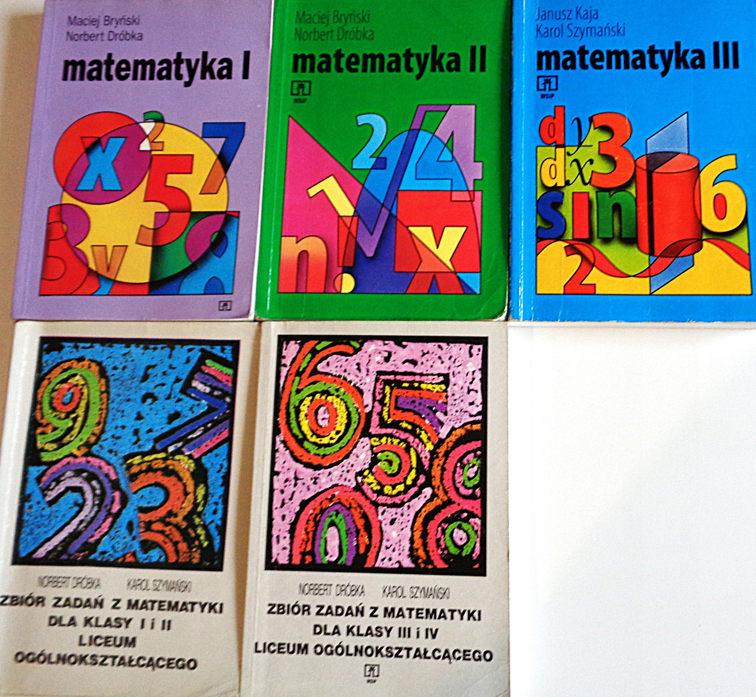 Я повинен запропонувати п'ять підручників для вивчення математики в середній школі та технічній школі: