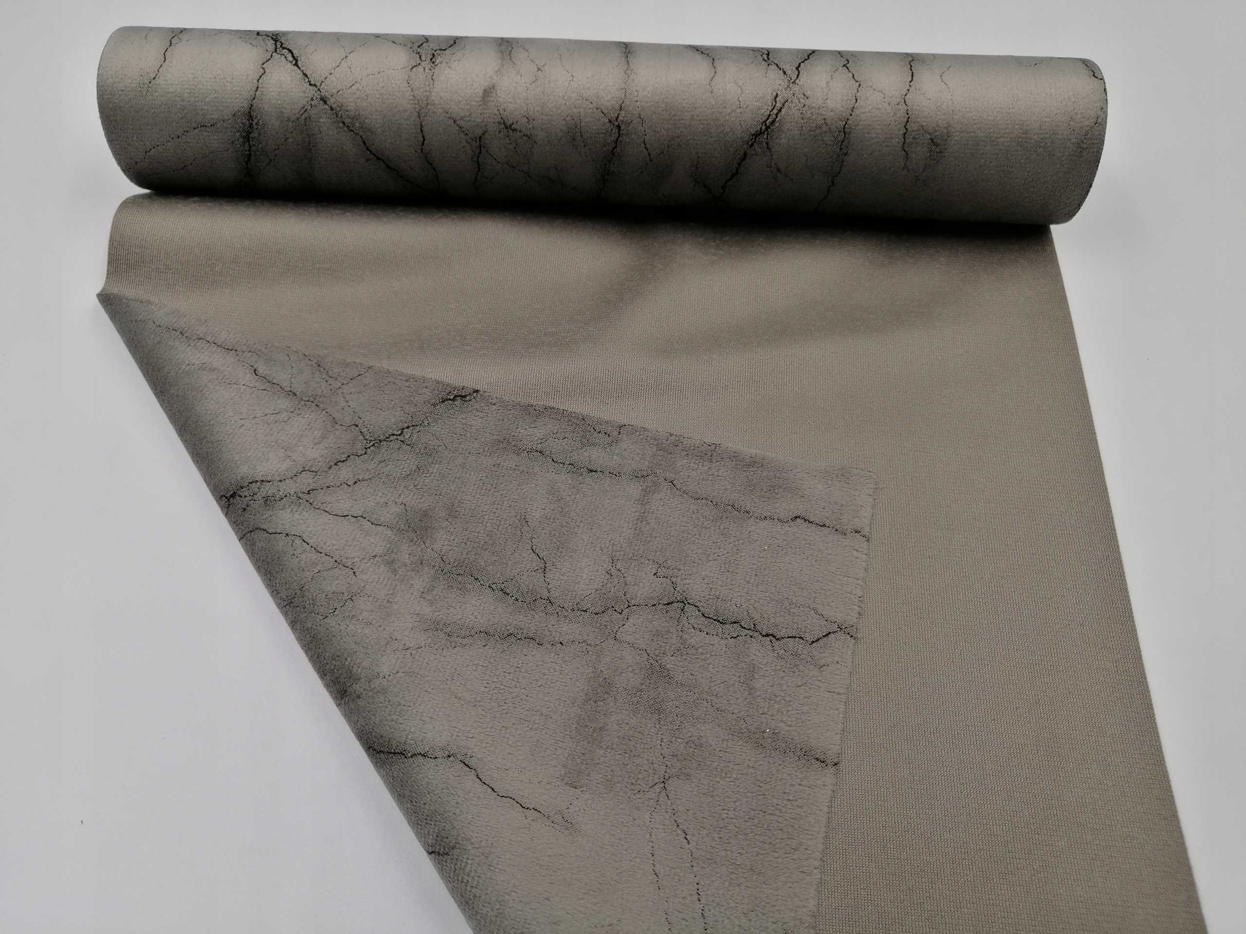 Декоративна тканина сірого кольору з мармуровим мотивом.